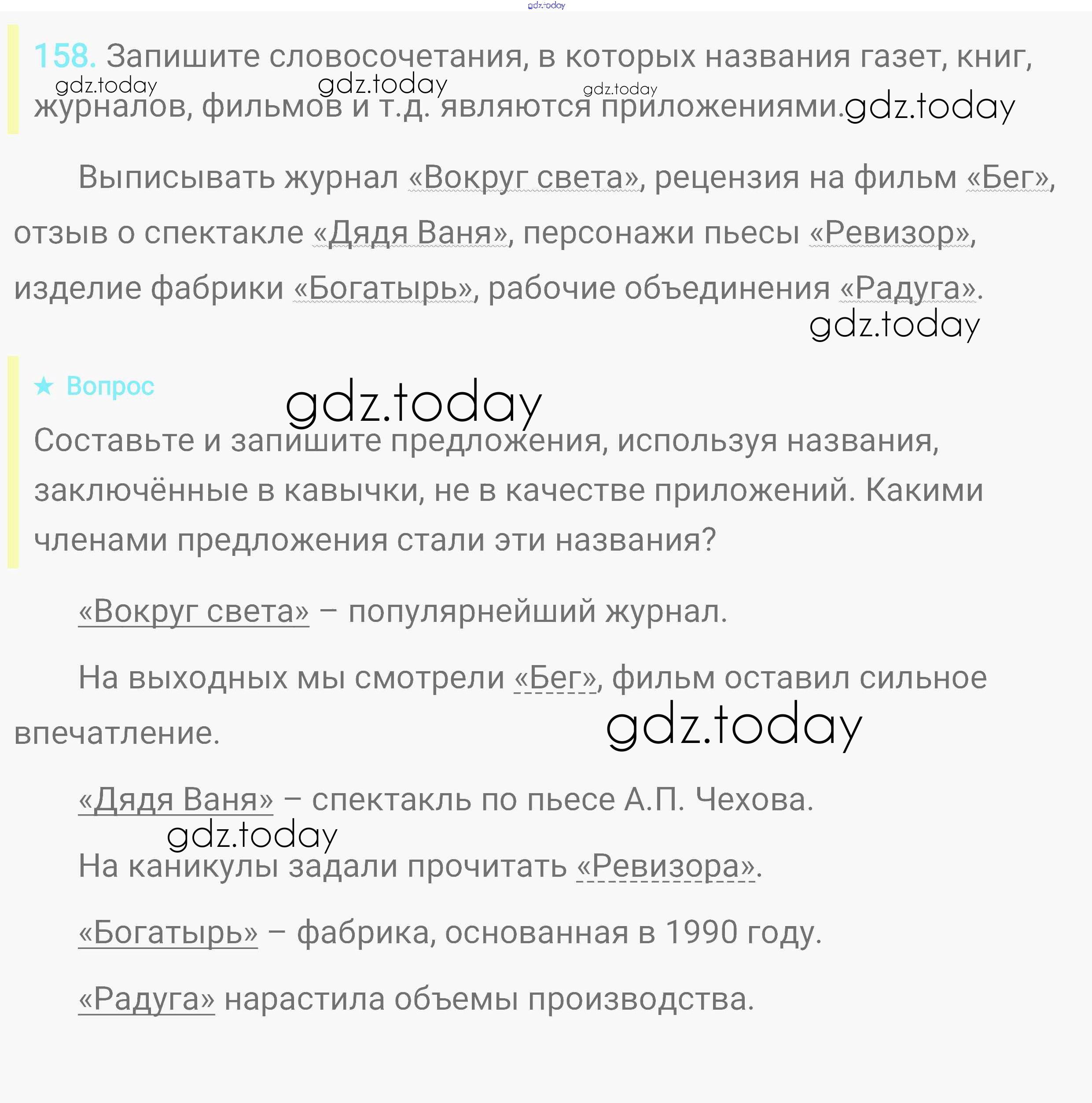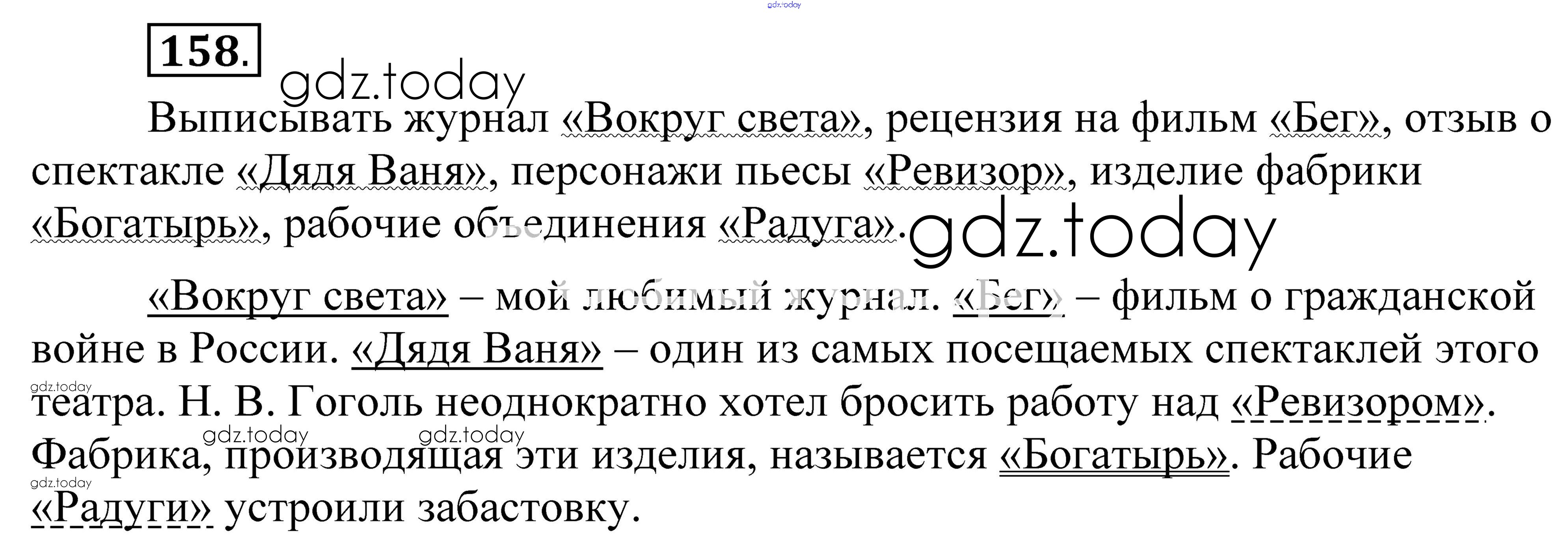 На страницах сайта gdz.today вы найдете учебный и вспомогательный материал, направленный на улучшения знаний школьной программы. ГДЗ - онлайн мир знаний Решение. Упражнения 158 Практике по Русскому языку для 8 класса Пичугов, Еремеева Дрофа, Дрофа Вертикаль 2016, 2022