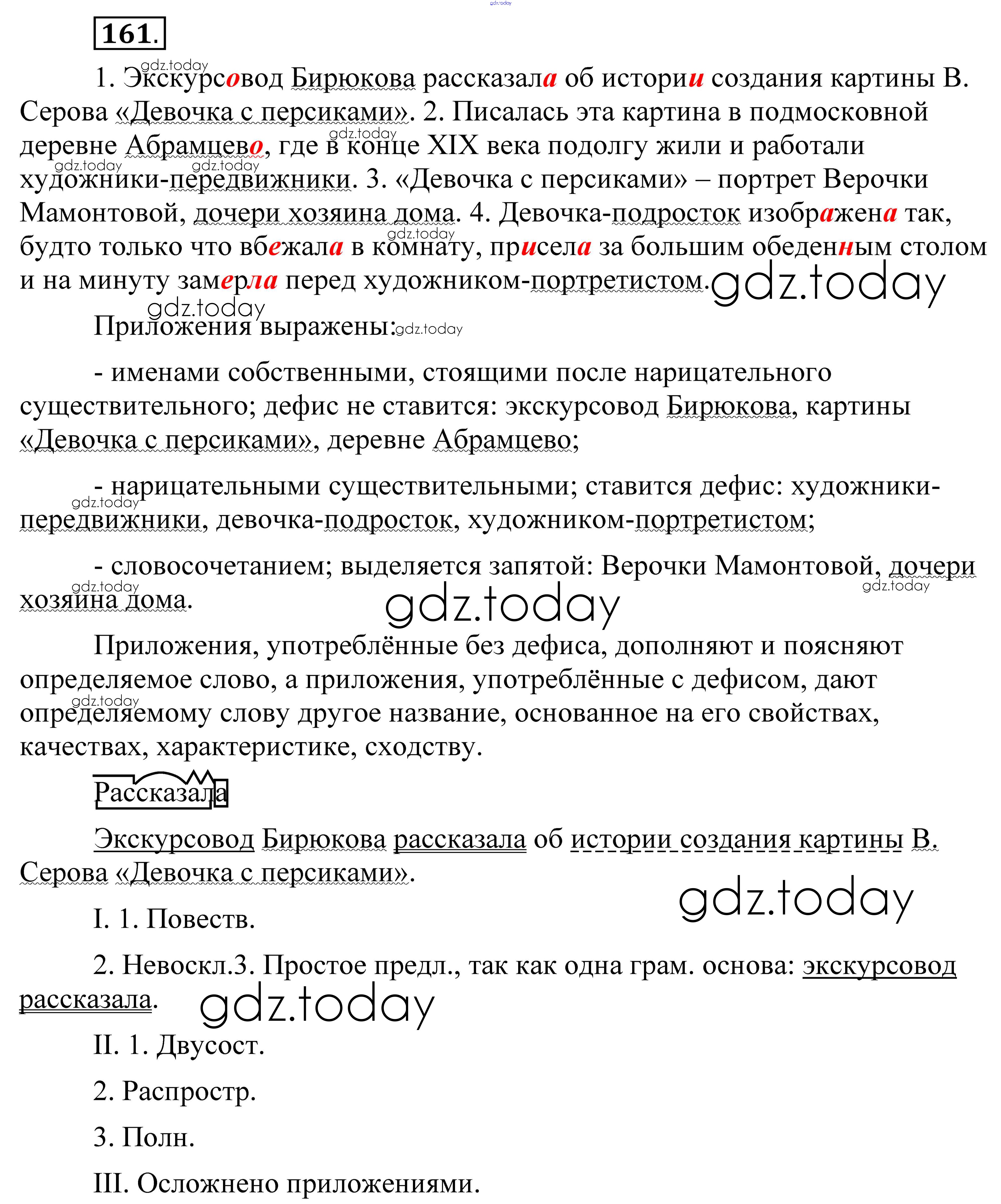 На страницах сайта gdz.today вы найдете учебный и вспомогательный материал, направленный на улучшения знаний школьной программы. ГДЗ - онлайн мир знаний Решение. Упражнения 161 Практике по Русскому языку для 8 класса Пичугов, Еремеева Дрофа, Дрофа Вертикаль 2016, 2022