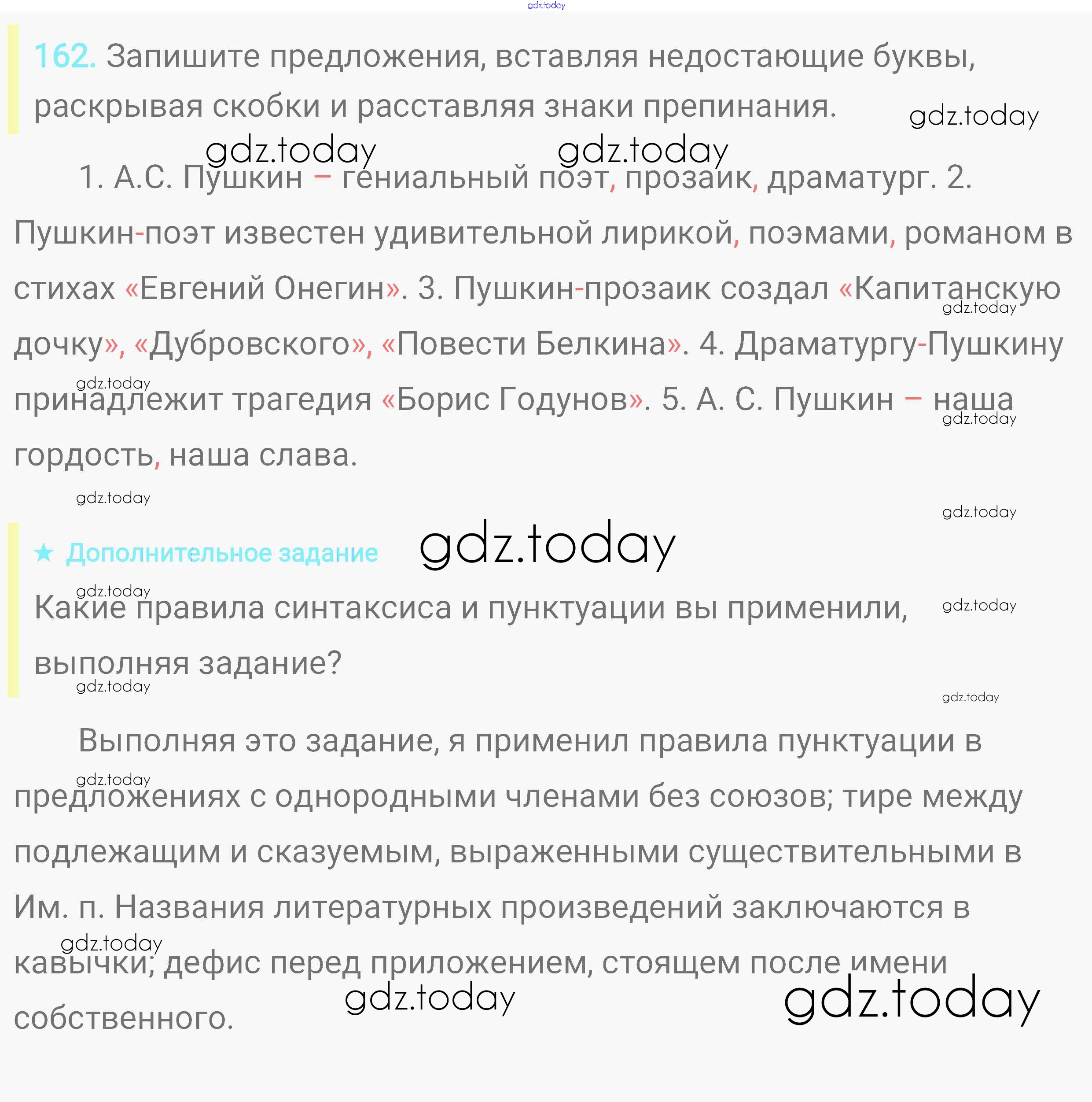 На страницах сайта gdz.today вы найдете учебный и вспомогательный материал, направленный на улучшения знаний школьной программы. ГДЗ - онлайн мир знаний Решение. Упражнения 162 Практике по Русскому языку для 8 класса Пичугов, Еремеева Дрофа, Дрофа Вертикаль 2016, 2022