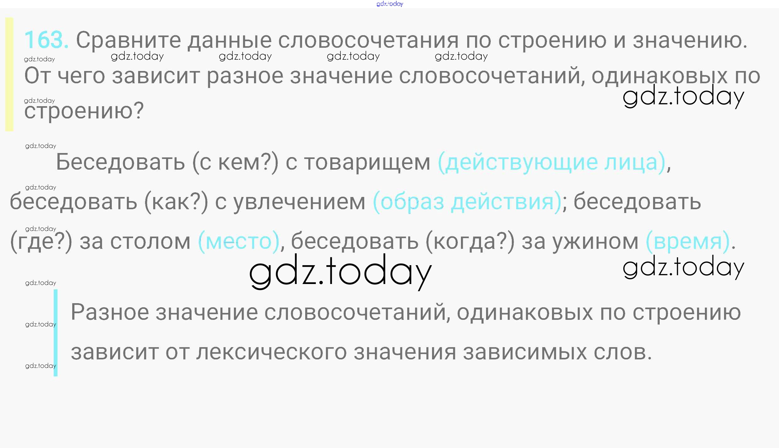 На страницах сайта gdz.today вы найдете учебный и вспомогательный материал, направленный на улучшения знаний школьной программы. ГДЗ - онлайн мир знаний Решение. Упражнения 163 Практике по Русскому языку для 8 класса Пичугов, Еремеева Дрофа, Дрофа Вертикаль 2016, 2022