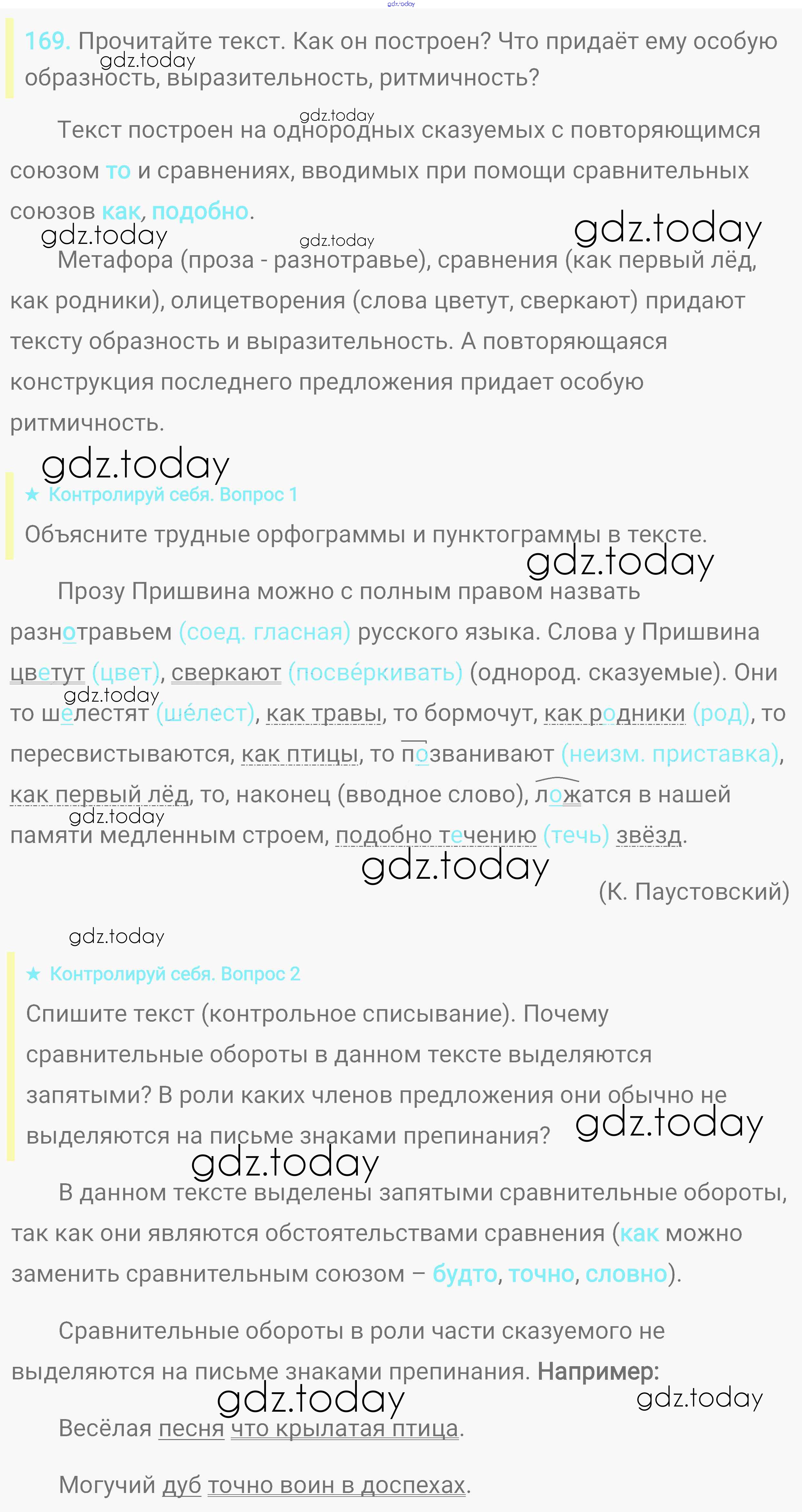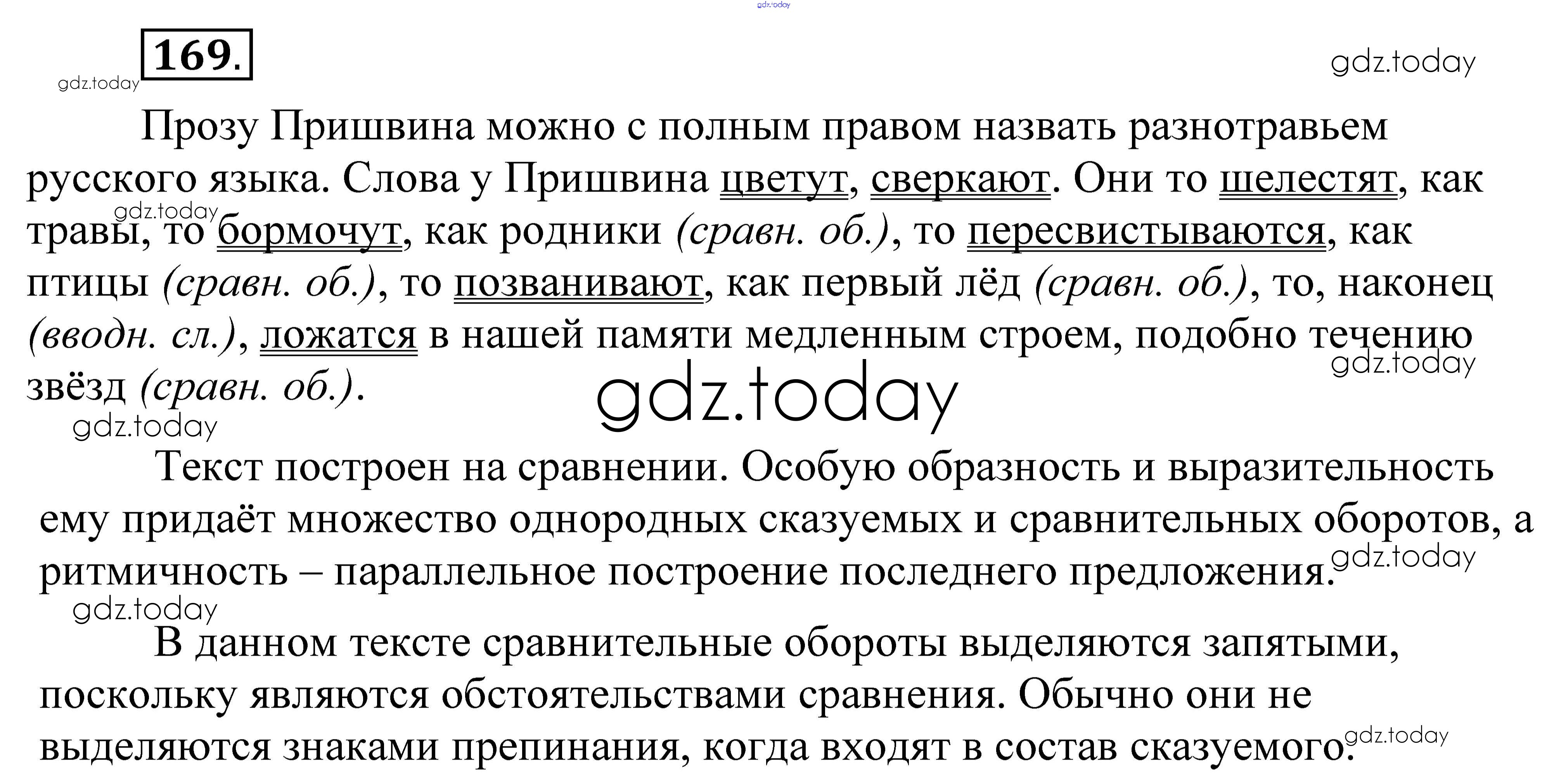 На страницах сайта gdz.today вы найдете учебный и вспомогательный материал, направленный на улучшения знаний школьной программы. ГДЗ - онлайн мир знаний Решение. Упражнения 169 Практике по Русскому языку для 8 класса Пичугов, Еремеева Дрофа, Дрофа Вертикаль 2016, 2022