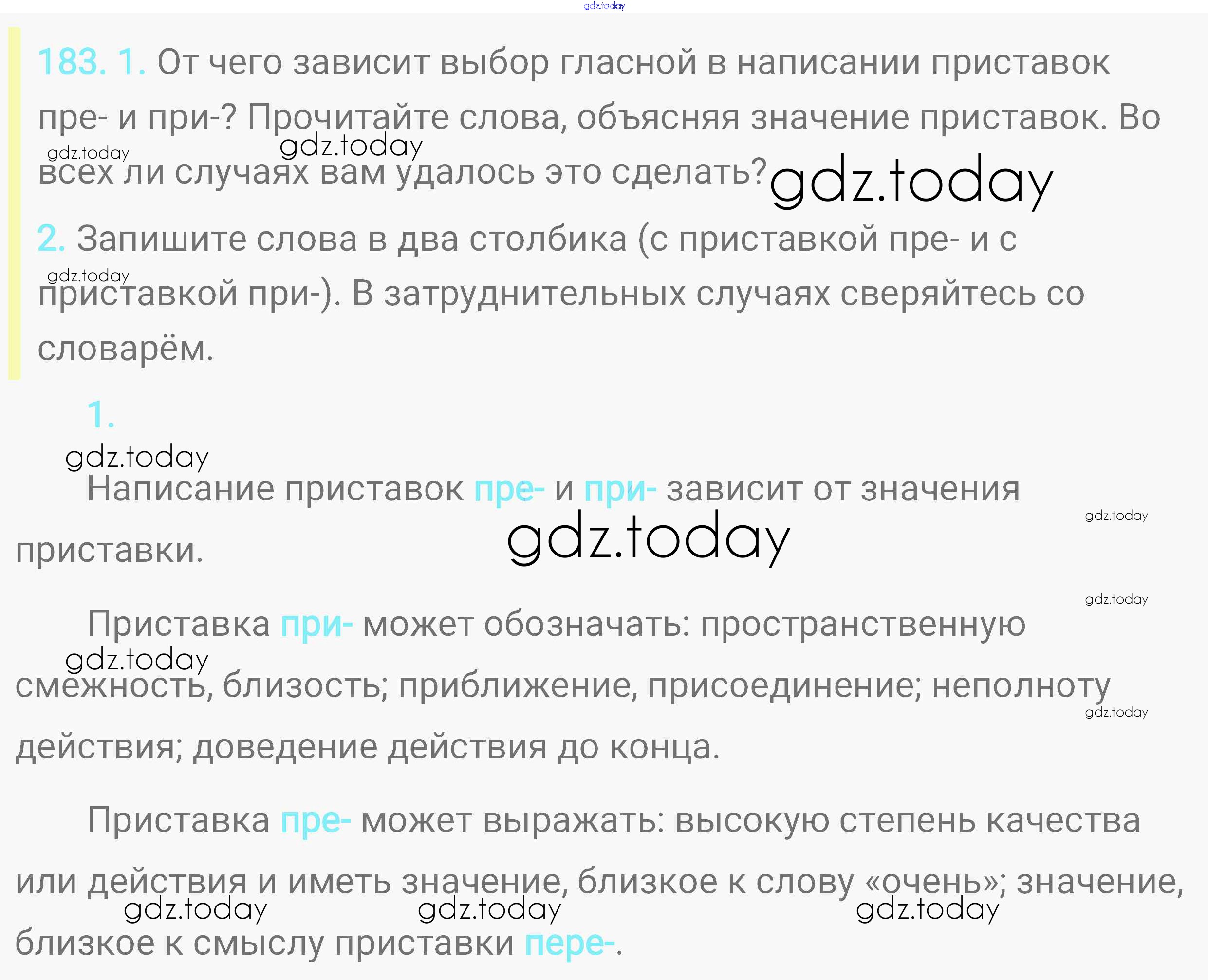 На страницах сайта gdz.today вы найдете учебный и вспомогательный материал, направленный на улучшения знаний школьной программы. ГДЗ - онлайн мир знаний Решение. Упражнения 183 Практике по Русскому языку для 8 класса Пичугов, Еремеева Дрофа, Дрофа Вертикаль 2016, 2022