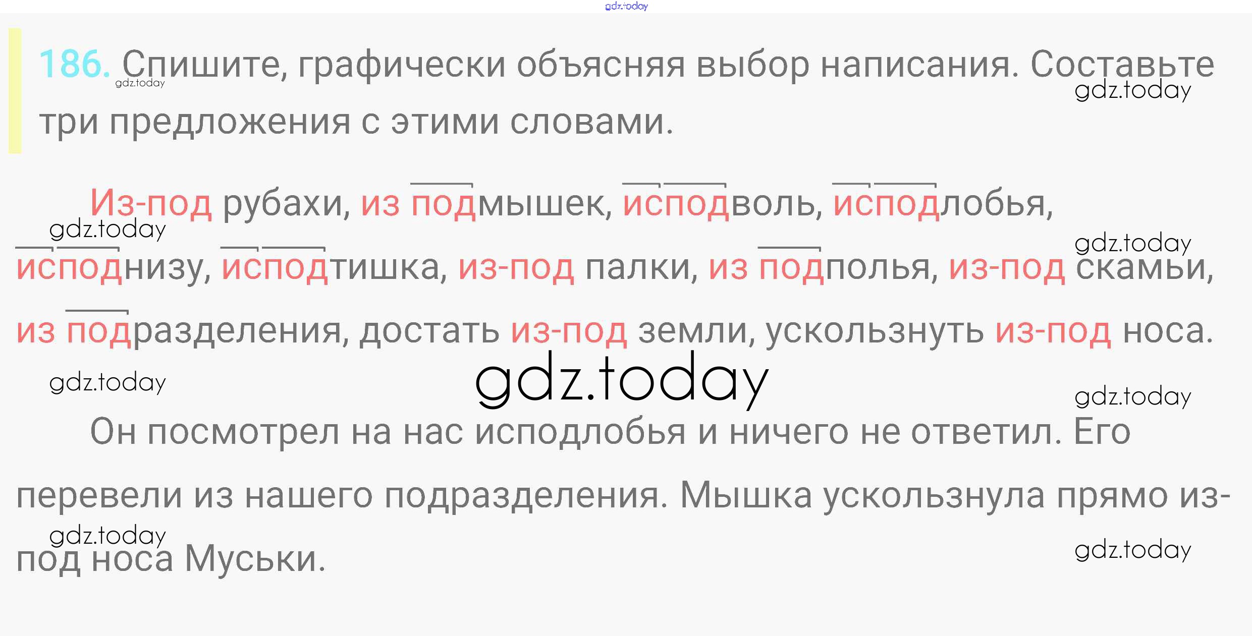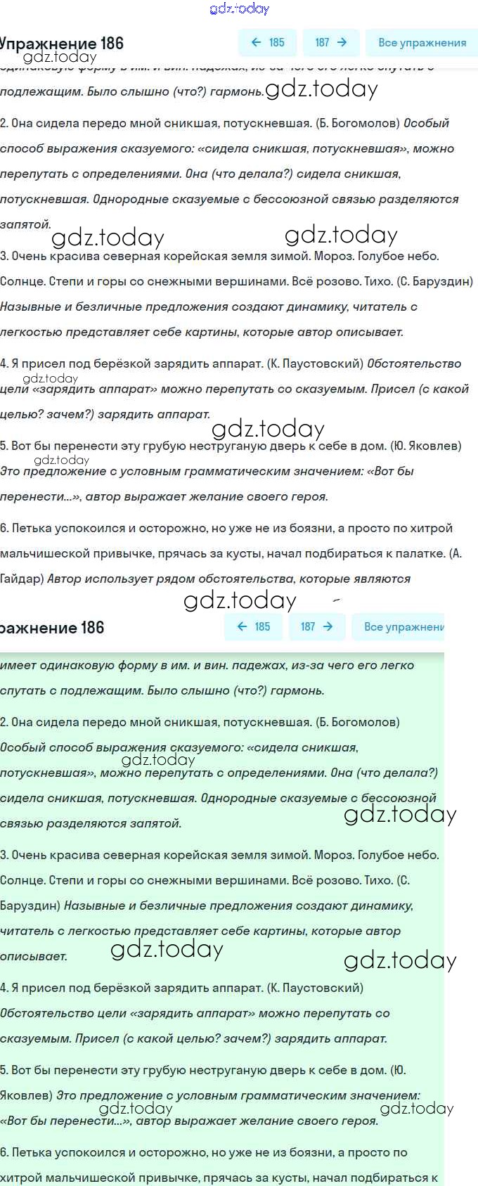 На страницах сайта gdz.today вы найдете учебный и вспомогательный материал, направленный на улучшения знаний школьной программы. ГДЗ - онлайн мир знаний Решение. Упражнения 186 Практике по Русскому языку для 8 класса Пичугов, Еремеева Дрофа, Дрофа Вертикаль 2016, 2022
