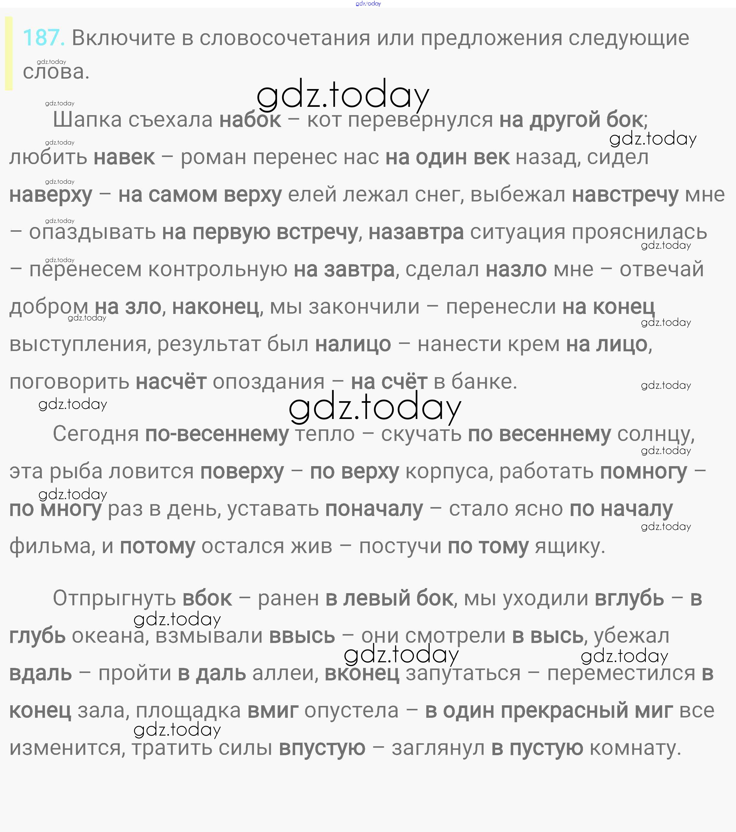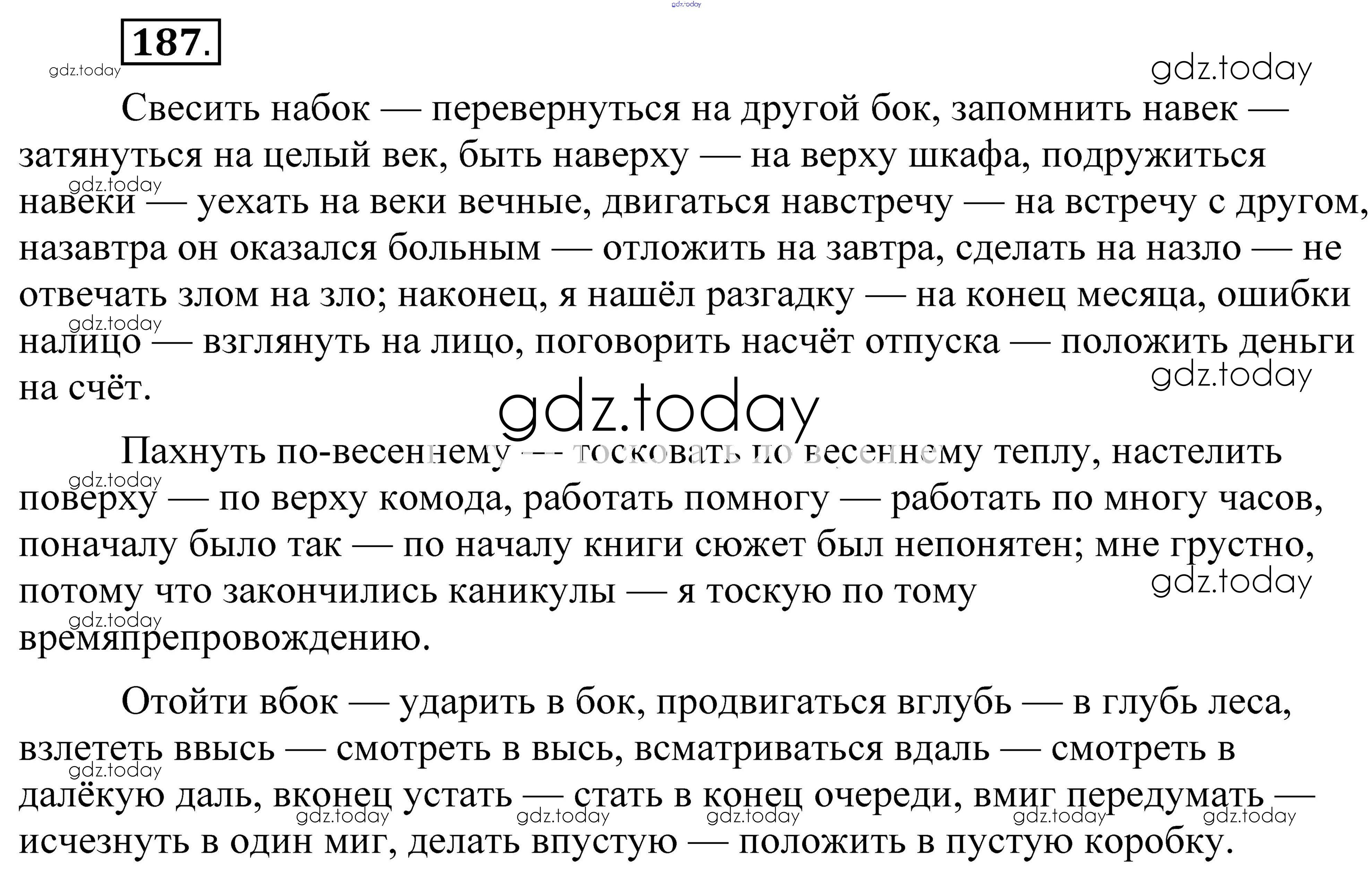 На страницах сайта gdz.today вы найдете учебный и вспомогательный материал, направленный на улучшения знаний школьной программы. ГДЗ - онлайн мир знаний Решение. Упражнения 187 Практике по Русскому языку для 8 класса Пичугов, Еремеева Дрофа, Дрофа Вертикаль 2016, 2022