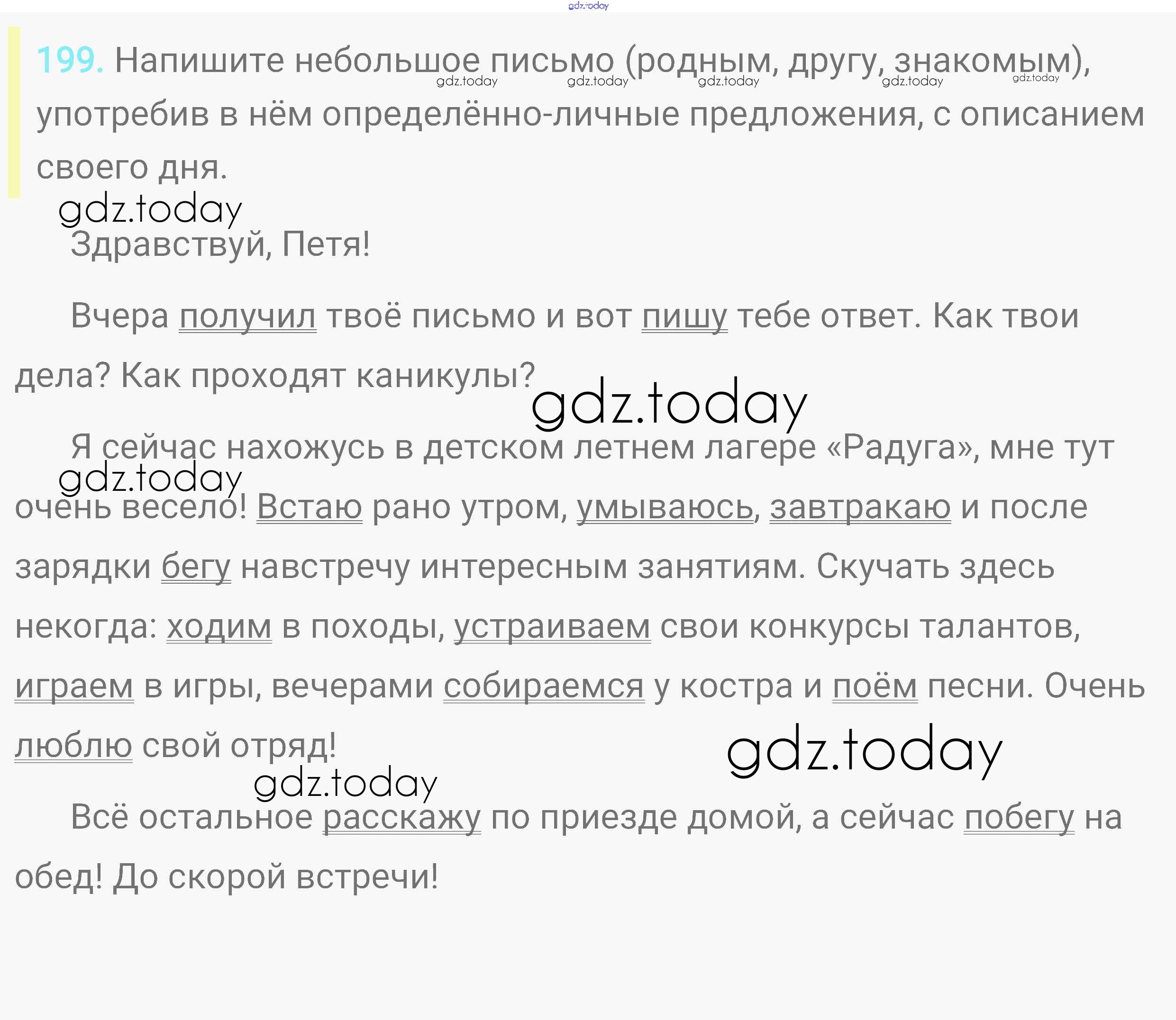 На страницах сайта gdz.today вы найдете учебный и вспомогательный материал, направленный на улучшения знаний школьной программы. ГДЗ - онлайн мир знаний Решение. Упражнения 199 Практике по Русскому языку для 8 класса Пичугов, Еремеева Дрофа, Дрофа Вертикаль 2016, 2022