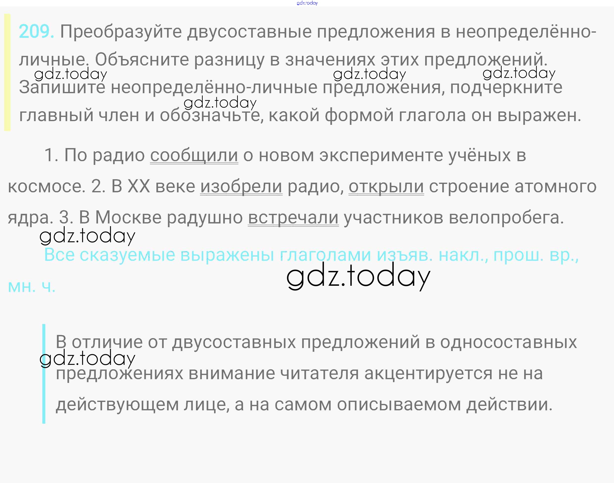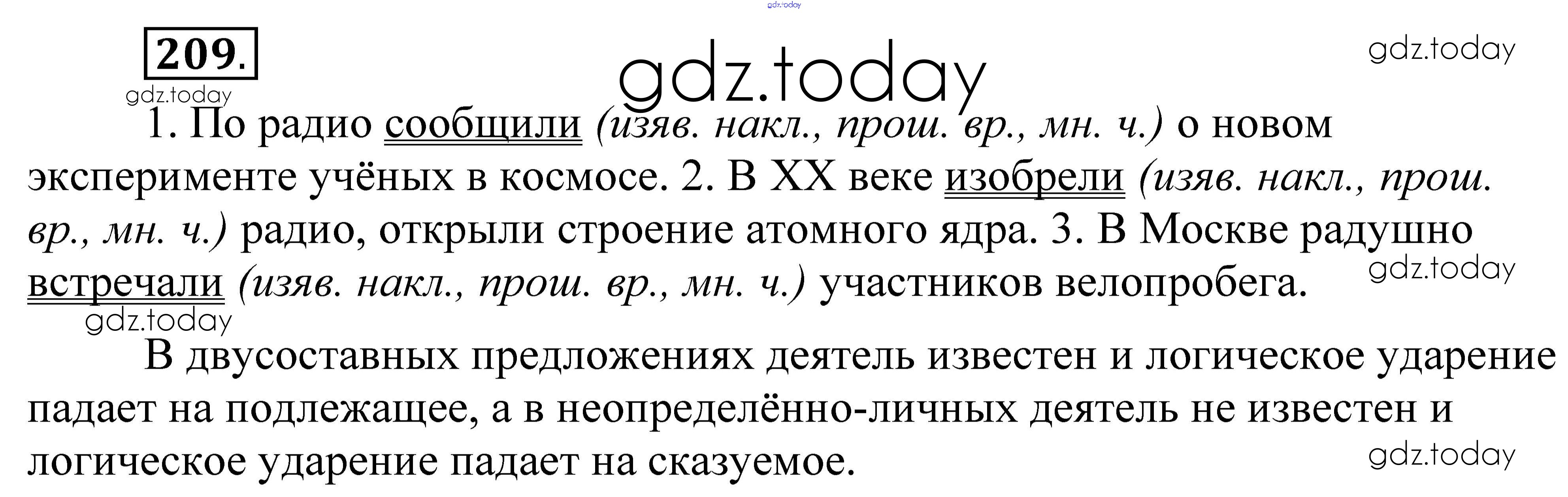 На страницах сайта gdz.today вы найдете учебный и вспомогательный материал, направленный на улучшения знаний школьной программы. ГДЗ - онлайн мир знаний Решение. Упражнения 209 Практике по Русскому языку для 8 класса Пичугов, Еремеева Дрофа, Дрофа Вертикаль 2016, 2022