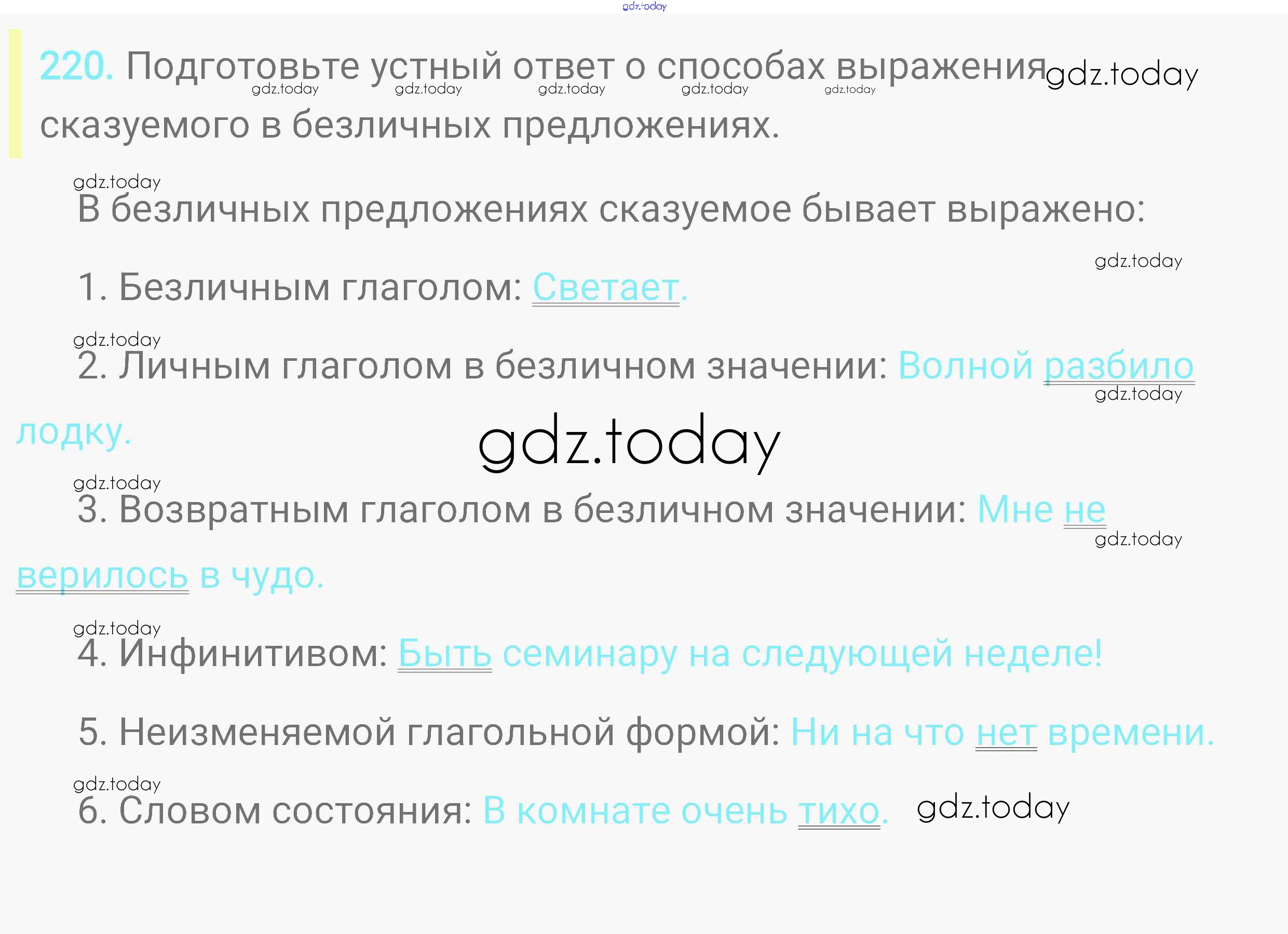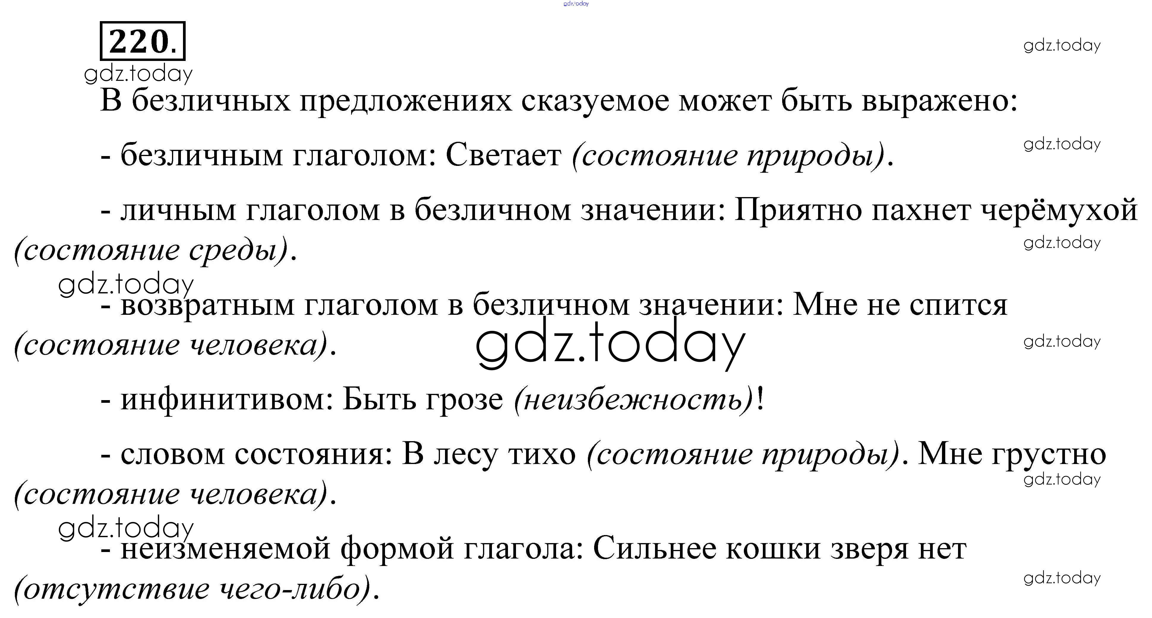 На страницах сайта gdz.today вы найдете учебный и вспомогательный материал, направленный на улучшения знаний школьной программы. ГДЗ - онлайн мир знаний Решение. Упражнения 220 Практике по Русскому языку для 8 класса Пичугов, Еремеева Дрофа, Дрофа Вертикаль 2016, 2022