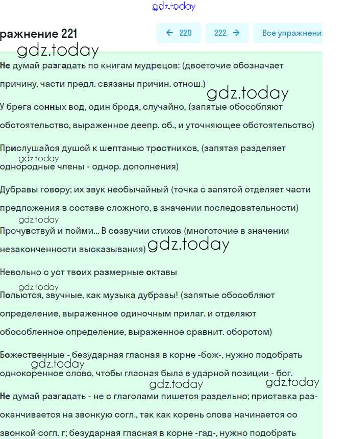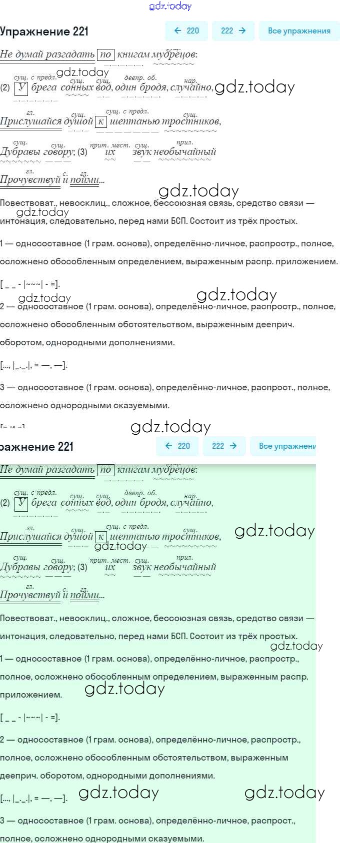 На страницах сайта gdz.today вы найдете учебный и вспомогательный материал, направленный на улучшения знаний школьной программы. ГДЗ - онлайн мир знаний Решение. Упражнения 221 Практике по Русскому языку для 8 класса Пичугов, Еремеева Дрофа, Дрофа Вертикаль 2016, 2022