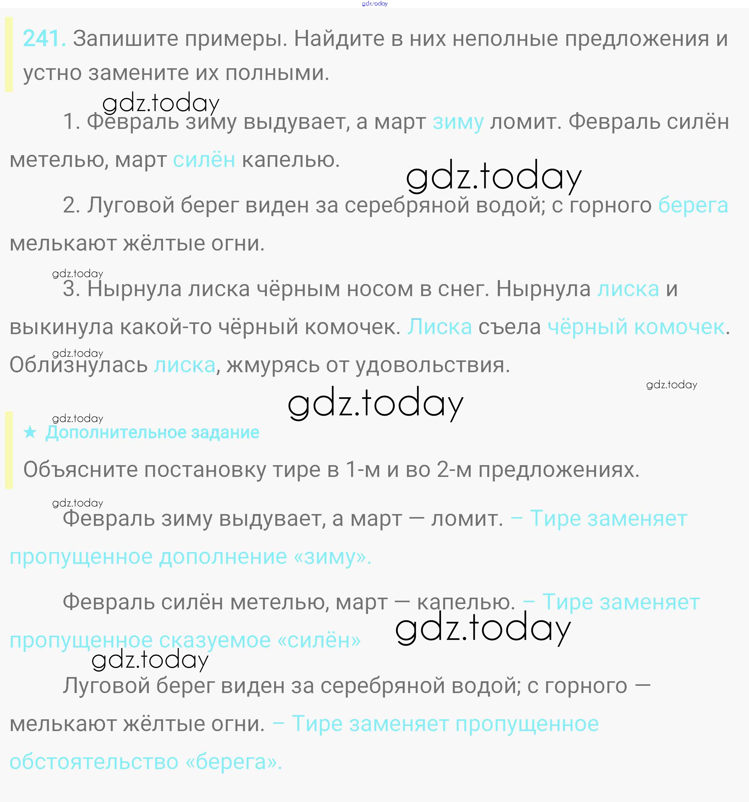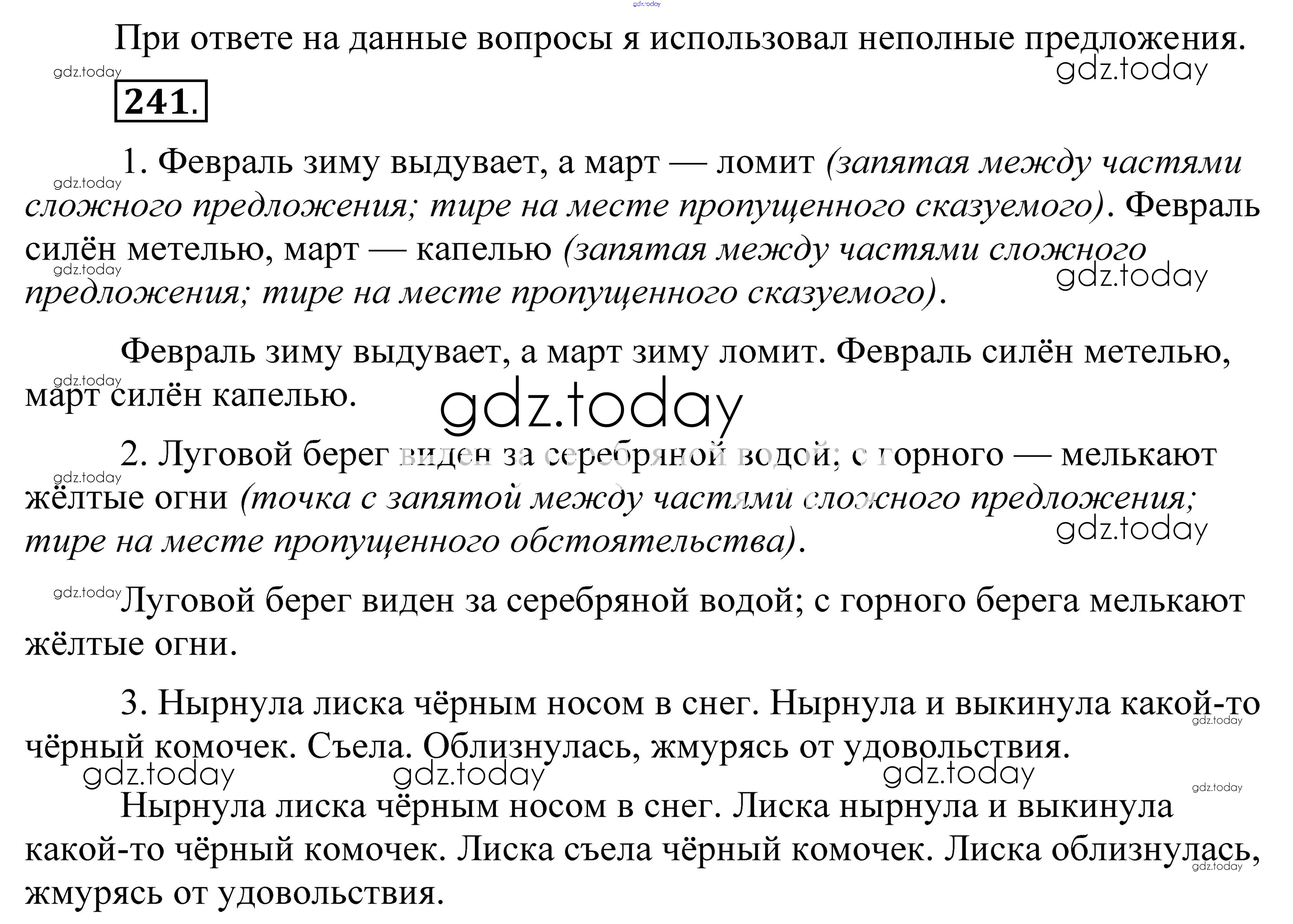 На страницах сайта gdz.today вы найдете учебный и вспомогательный материал, направленный на улучшения знаний школьной программы. ГДЗ - онлайн мир знаний Решение. Упражнения 241 Практике по Русскому языку для 8 класса Пичугов, Еремеева Дрофа, Дрофа Вертикаль 2016, 2022