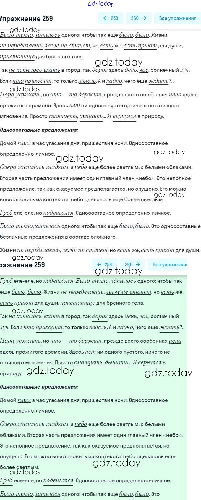 На страницах сайта gdz.today вы найдете учебный и вспомогательный материал, направленный на улучшения знаний школьной программы. ГДЗ - онлайн мир знаний Решение. Упражнения 259 Практике по Русскому языку для 8 класса Пичугов, Еремеева Дрофа, Дрофа Вертикаль 2016, 2022