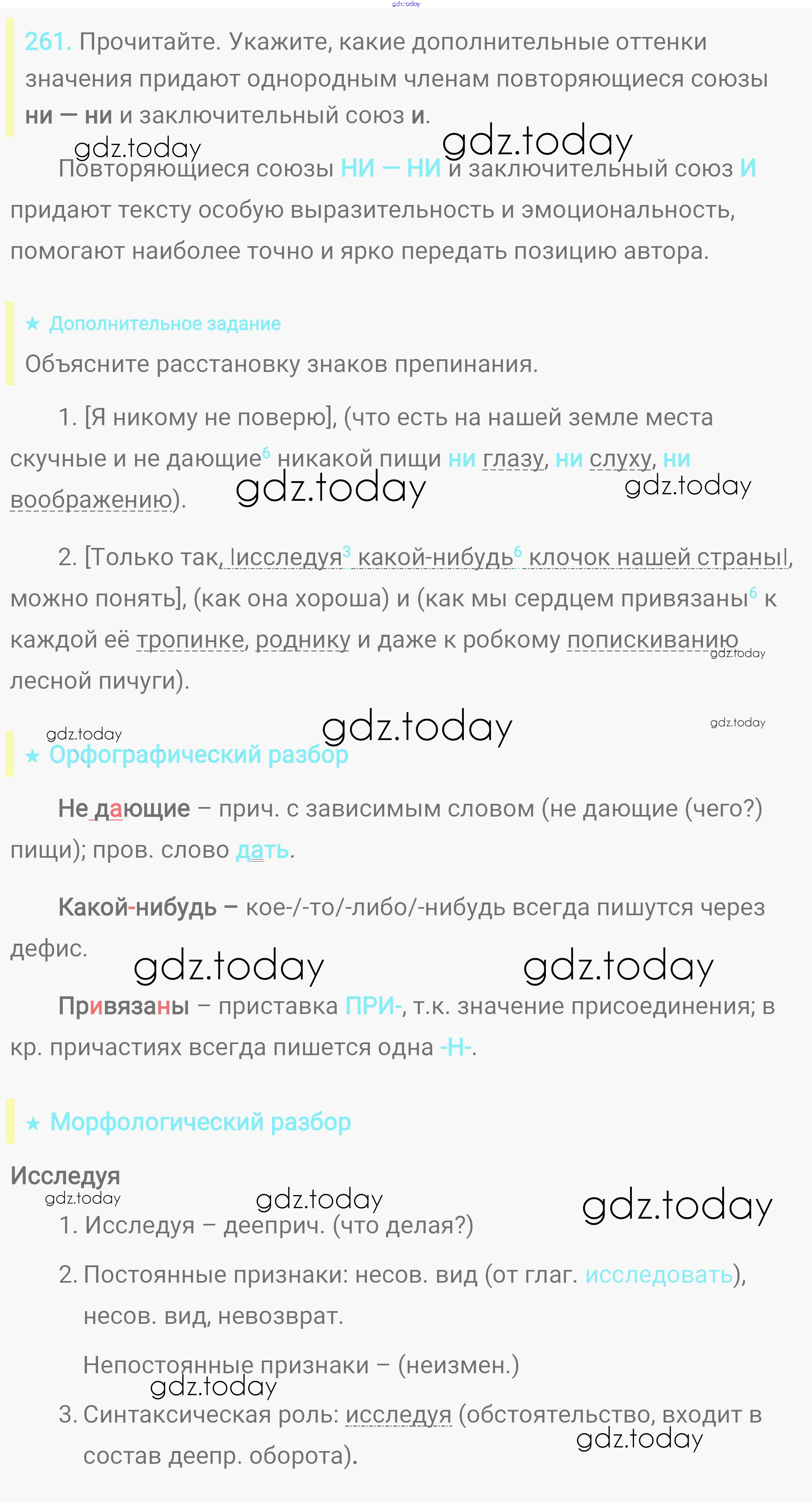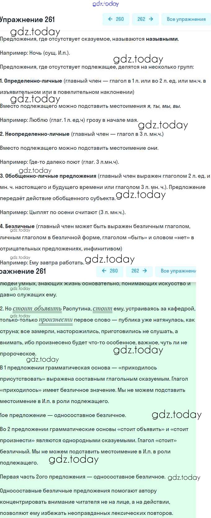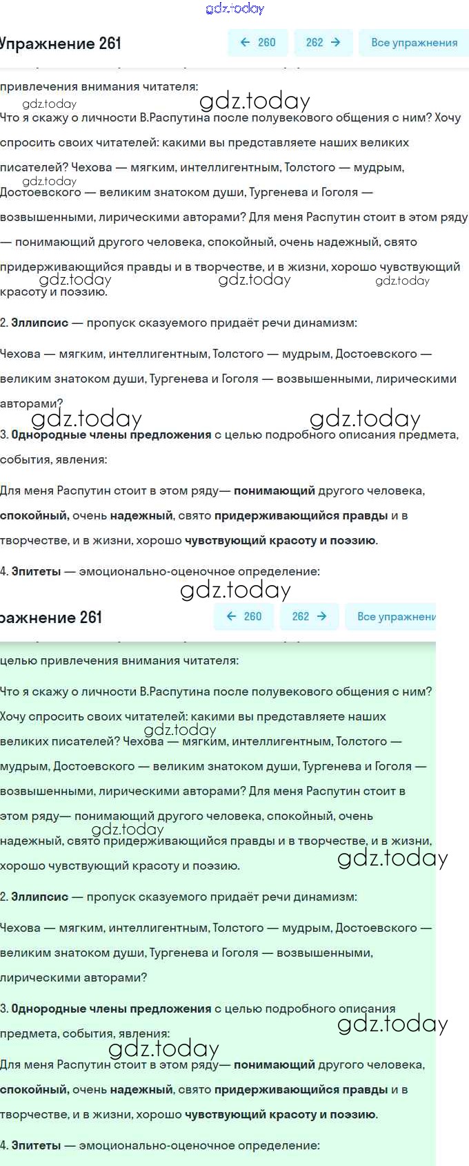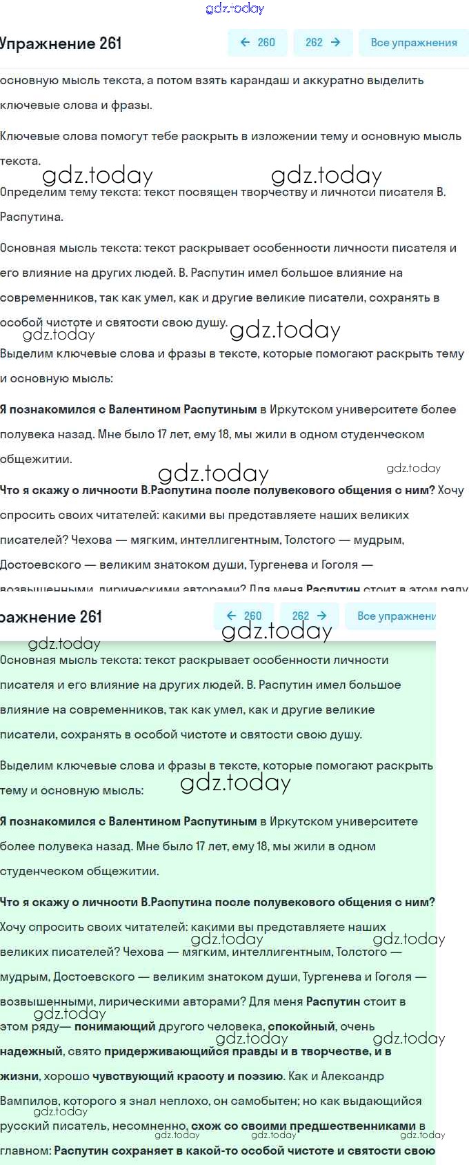 На страницах сайта gdz.today вы найдете учебный и вспомогательный материал, направленный на улучшения знаний школьной программы. ГДЗ - онлайн мир знаний Решение. Упражнения 261 Практике по Русскому языку для 8 класса Пичугов, Еремеева Дрофа, Дрофа Вертикаль 2016, 2022