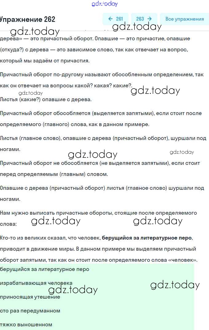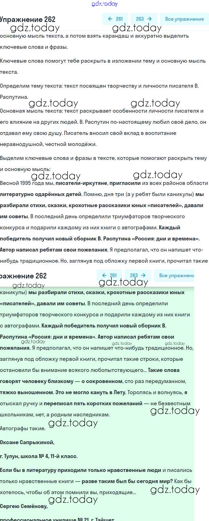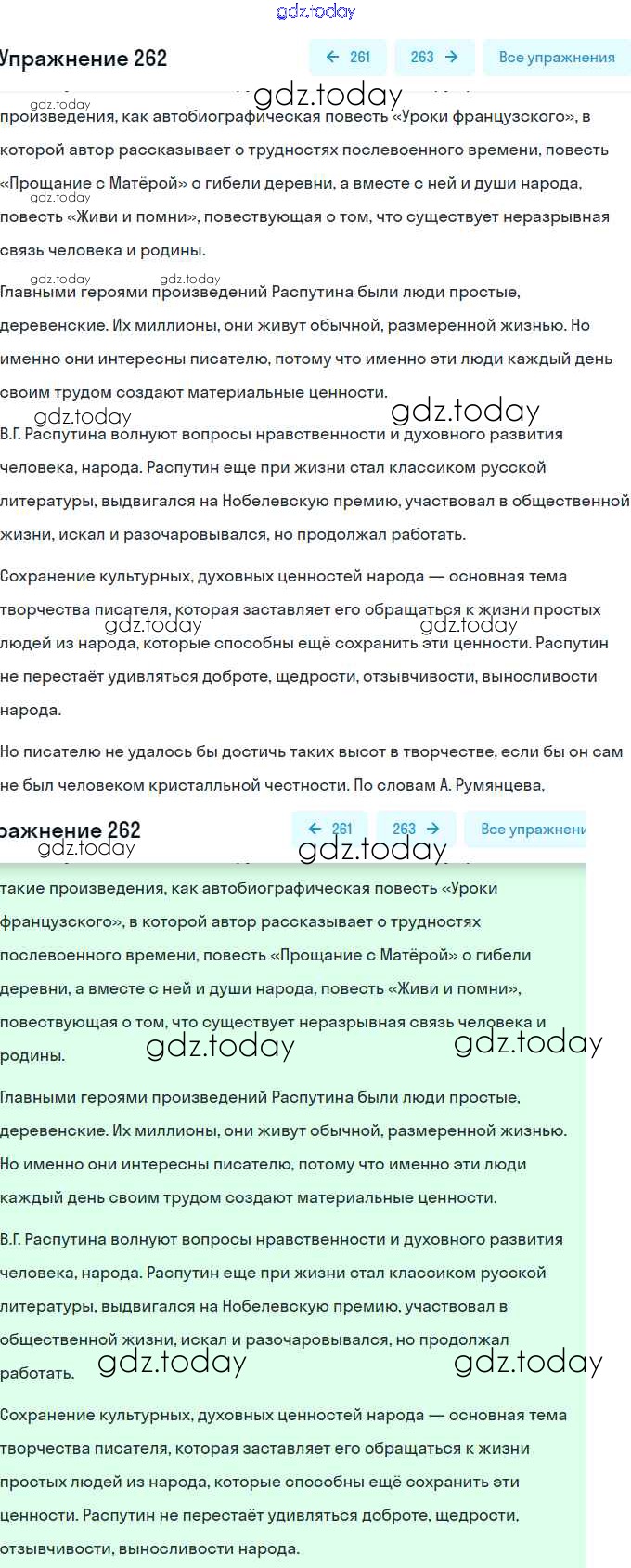На страницах сайта gdz.today вы найдете учебный и вспомогательный материал, направленный на улучшения знаний школьной программы. ГДЗ - онлайн мир знаний Решение. Упражнения 262 Практике по Русскому языку для 8 класса Пичугов, Еремеева Дрофа, Дрофа Вертикаль 2016, 2022