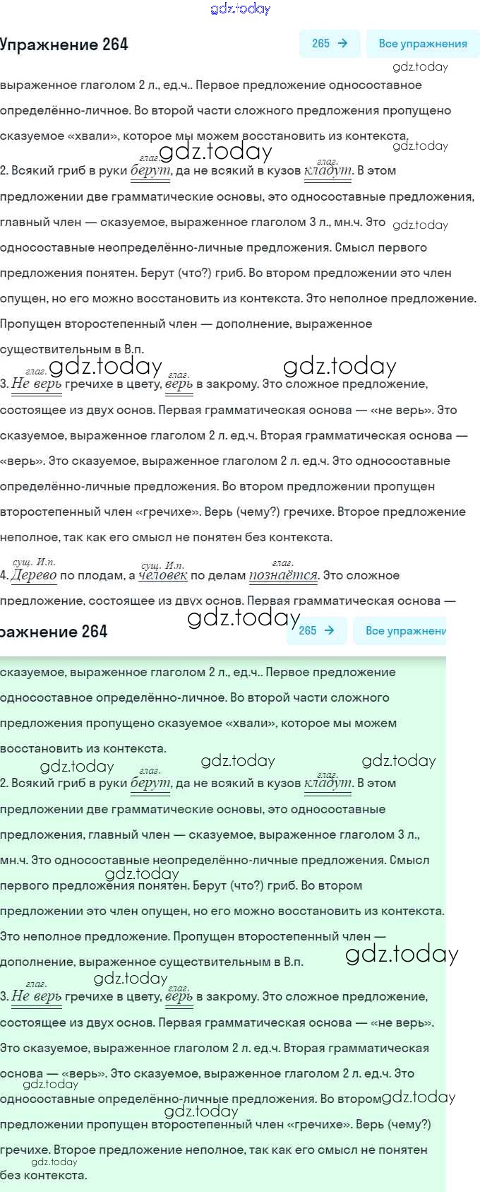 На страницах сайта gdz.today вы найдете учебный и вспомогательный материал, направленный на улучшения знаний школьной программы. ГДЗ - онлайн мир знаний Решение. Упражнения 264 Практике по Русскому языку для 8 класса Пичугов, Еремеева Дрофа, Дрофа Вертикаль 2016, 2022