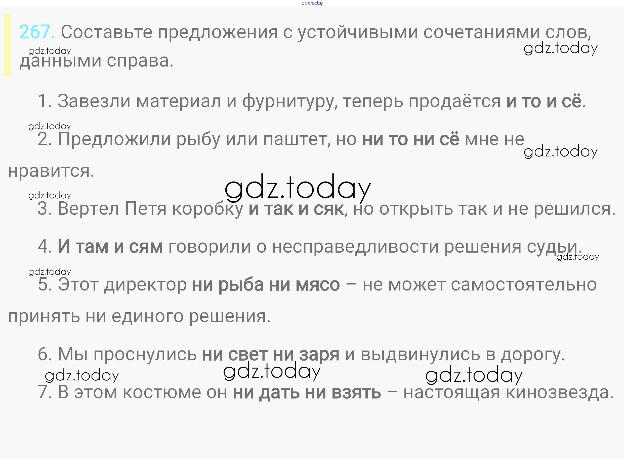 На страницах сайта gdz.today вы найдете учебный и вспомогательный материал, направленный на улучшения знаний школьной программы. ГДЗ - онлайн мир знаний Решение. Упражнения 267 Практике по Русскому языку для 8 класса Пичугов, Еремеева Дрофа, Дрофа Вертикаль 2016, 2022