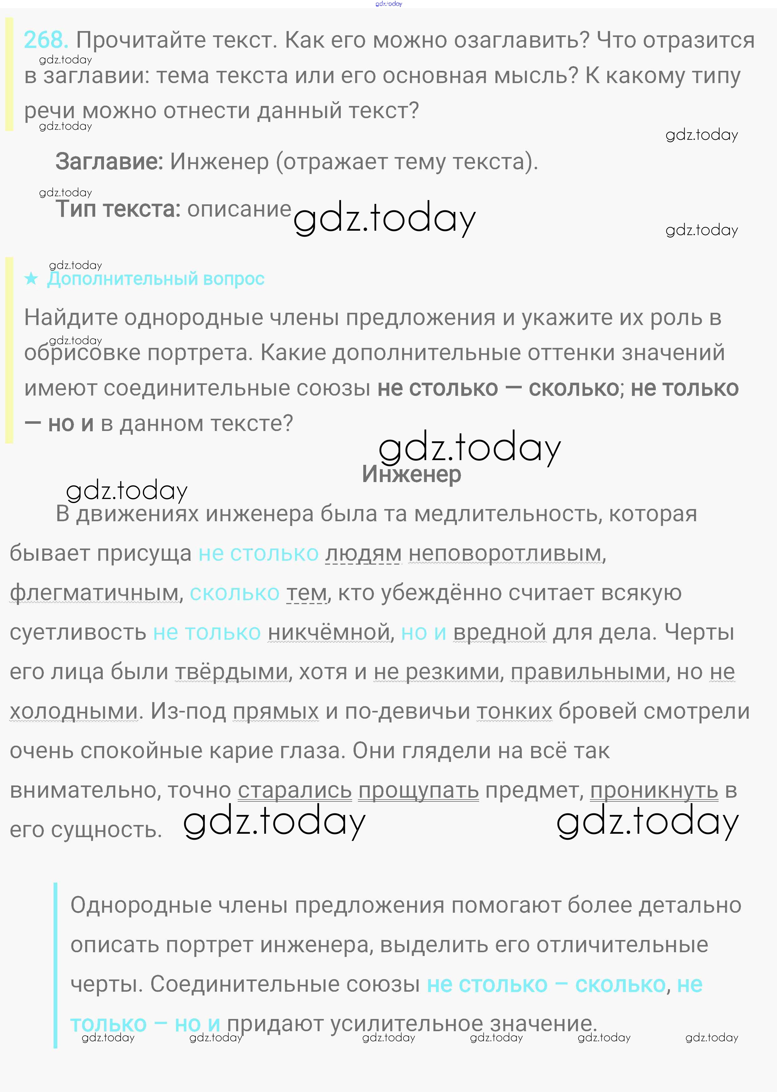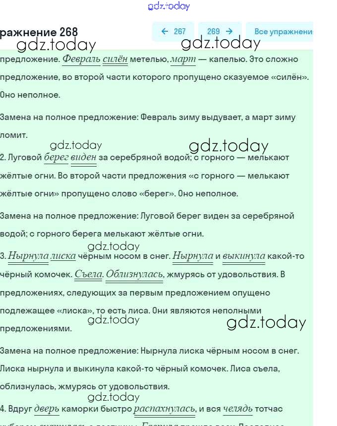 На страницах сайта gdz.today вы найдете учебный и вспомогательный материал, направленный на улучшения знаний школьной программы. ГДЗ - онлайн мир знаний Решение. Упражнения 268 Практике по Русскому языку для 8 класса Пичугов, Еремеева Дрофа, Дрофа Вертикаль 2016, 2022