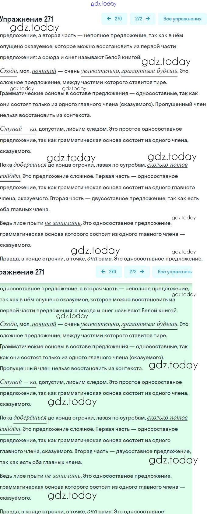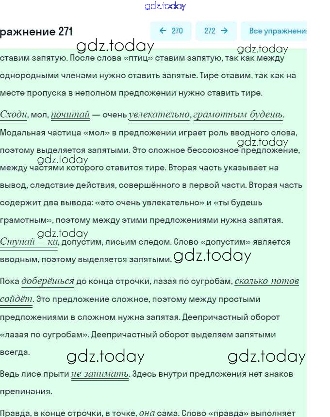 На страницах сайта gdz.today вы найдете учебный и вспомогательный материал, направленный на улучшения знаний школьной программы. ГДЗ - онлайн мир знаний Решение. Упражнения 271 Практике по Русскому языку для 8 класса Пичугов, Еремеева Дрофа, Дрофа Вертикаль 2016, 2022