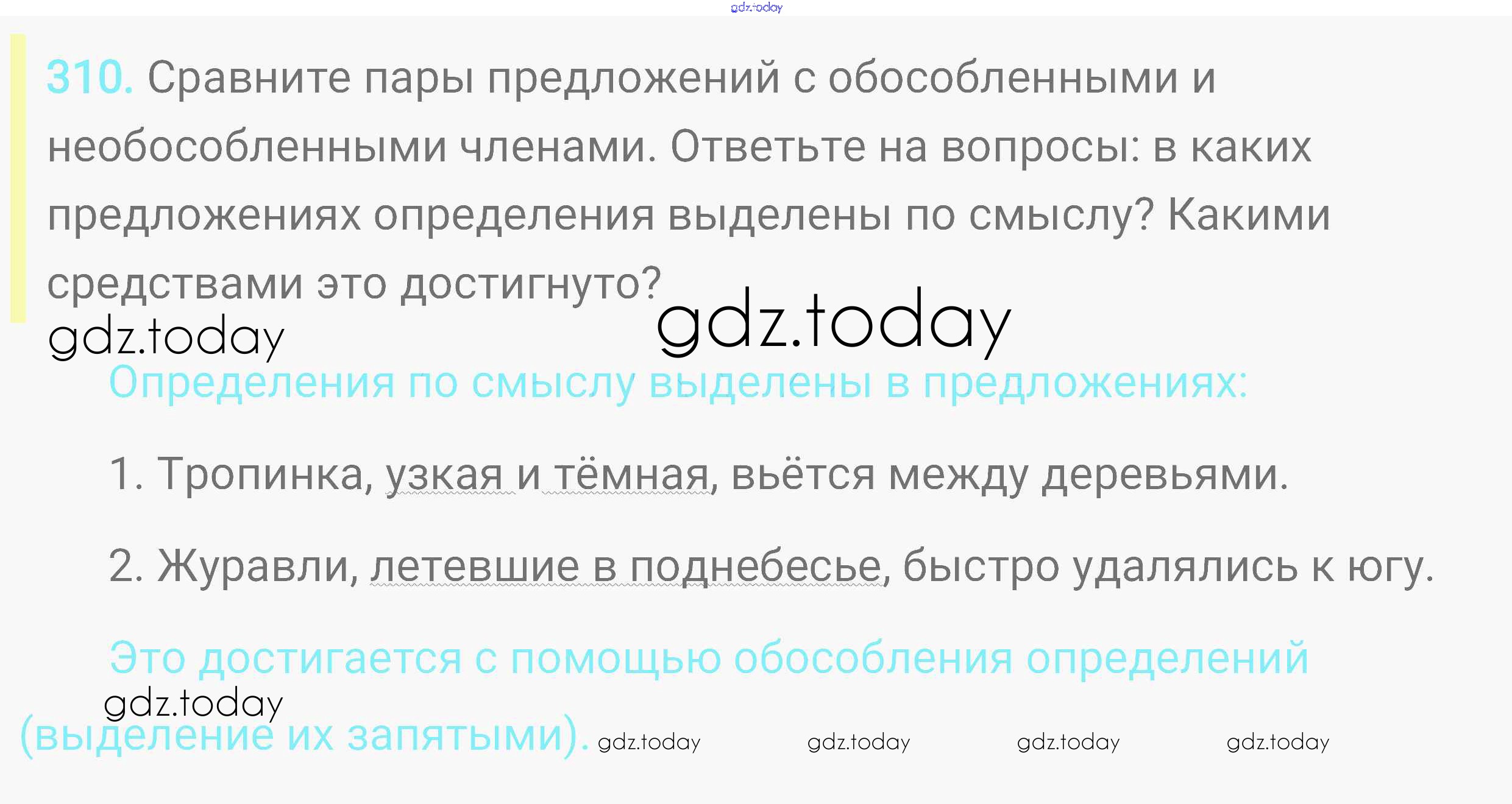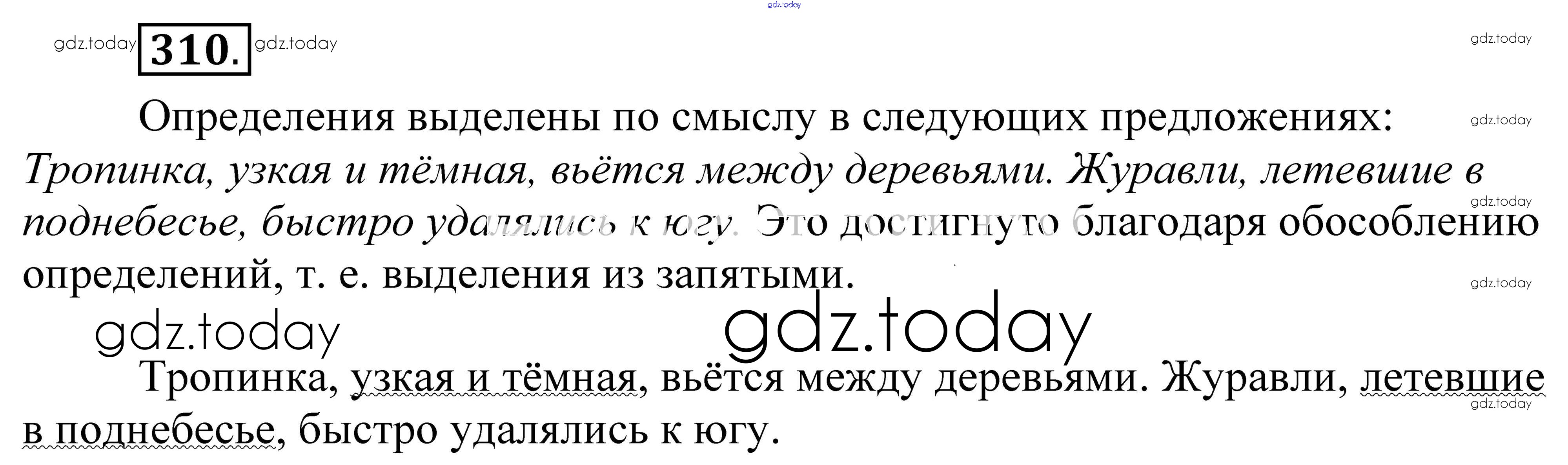 На страницах сайта gdz.today вы найдете учебный и вспомогательный материал, направленный на улучшения знаний школьной программы. ГДЗ - онлайн мир знаний Решение. Упражнения 310 Практике по Русскому языку для 8 класса Пичугов, Еремеева Дрофа, Дрофа Вертикаль 2016, 2022