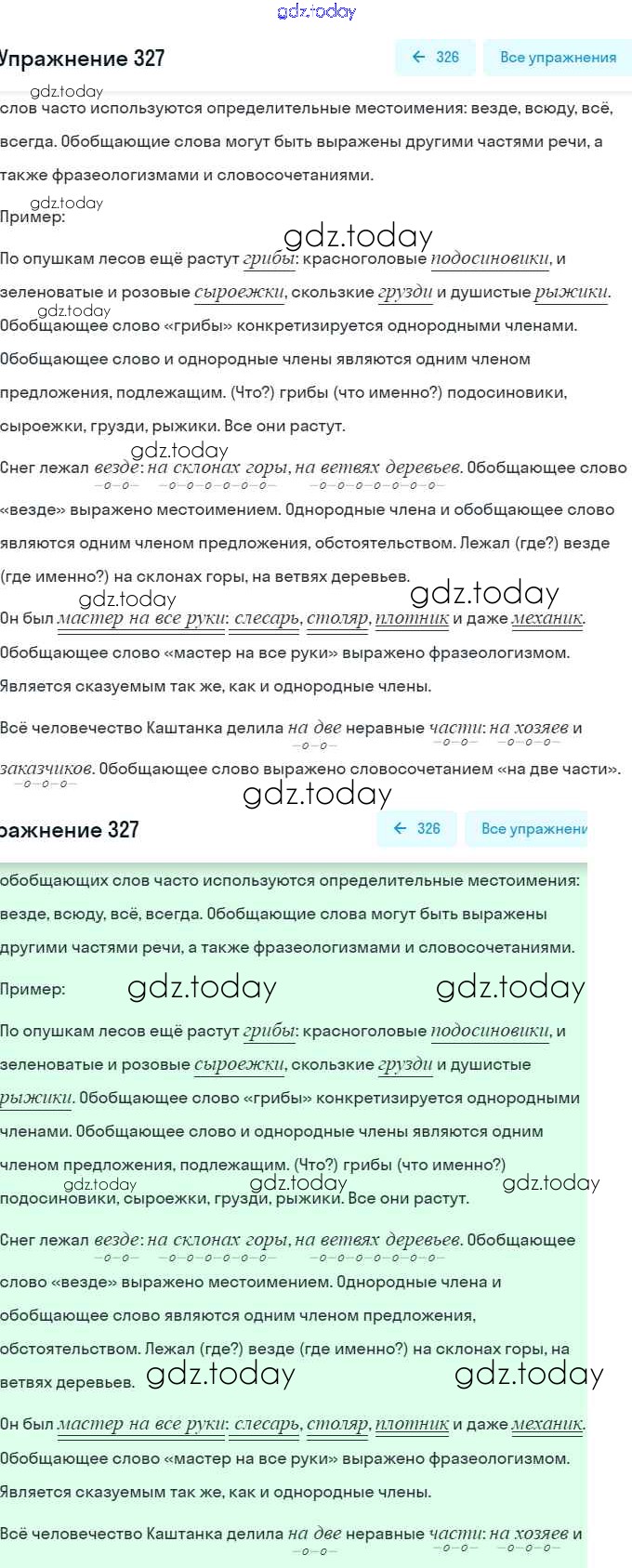 На страницах сайта gdz.today вы найдете учебный и вспомогательный материал, направленный на улучшения знаний школьной программы. ГДЗ - онлайн мир знаний Решение. Упражнения 327 Практике по Русскому языку для 8 класса Пичугов, Еремеева Дрофа, Дрофа Вертикаль 2016, 2022