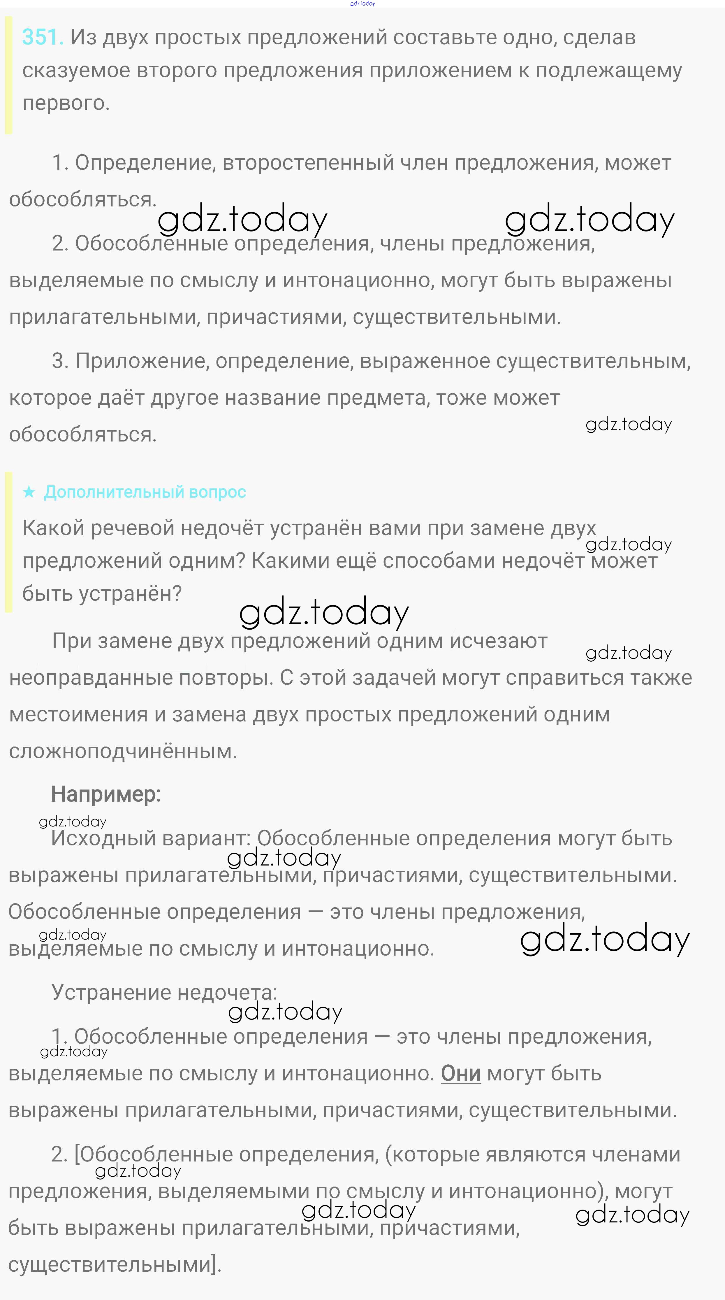 На страницах сайта gdz.today вы найдете учебный и вспомогательный материал, направленный на улучшения знаний школьной программы. ГДЗ - онлайн мир знаний Решение. Упражнения 351 Практике по Русскому языку для 8 класса Пичугов, Еремеева Дрофа, Дрофа Вертикаль 2016, 2022