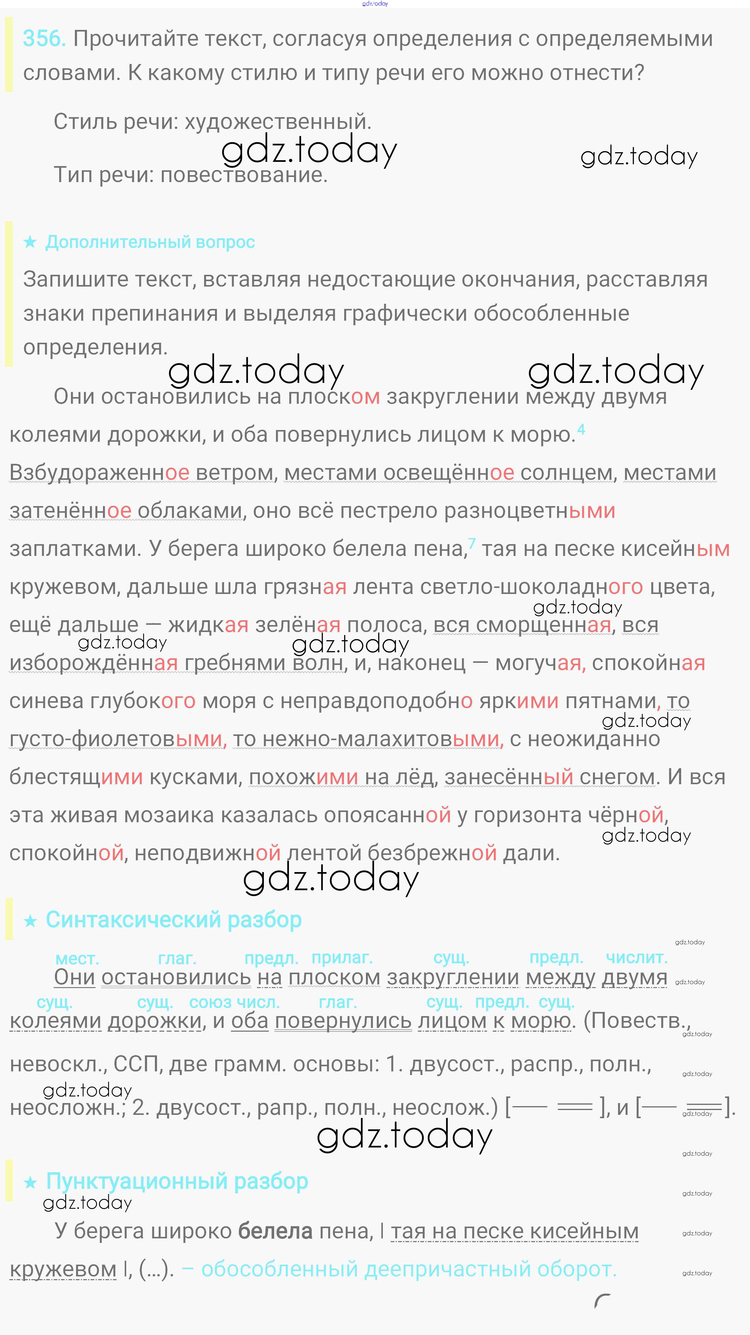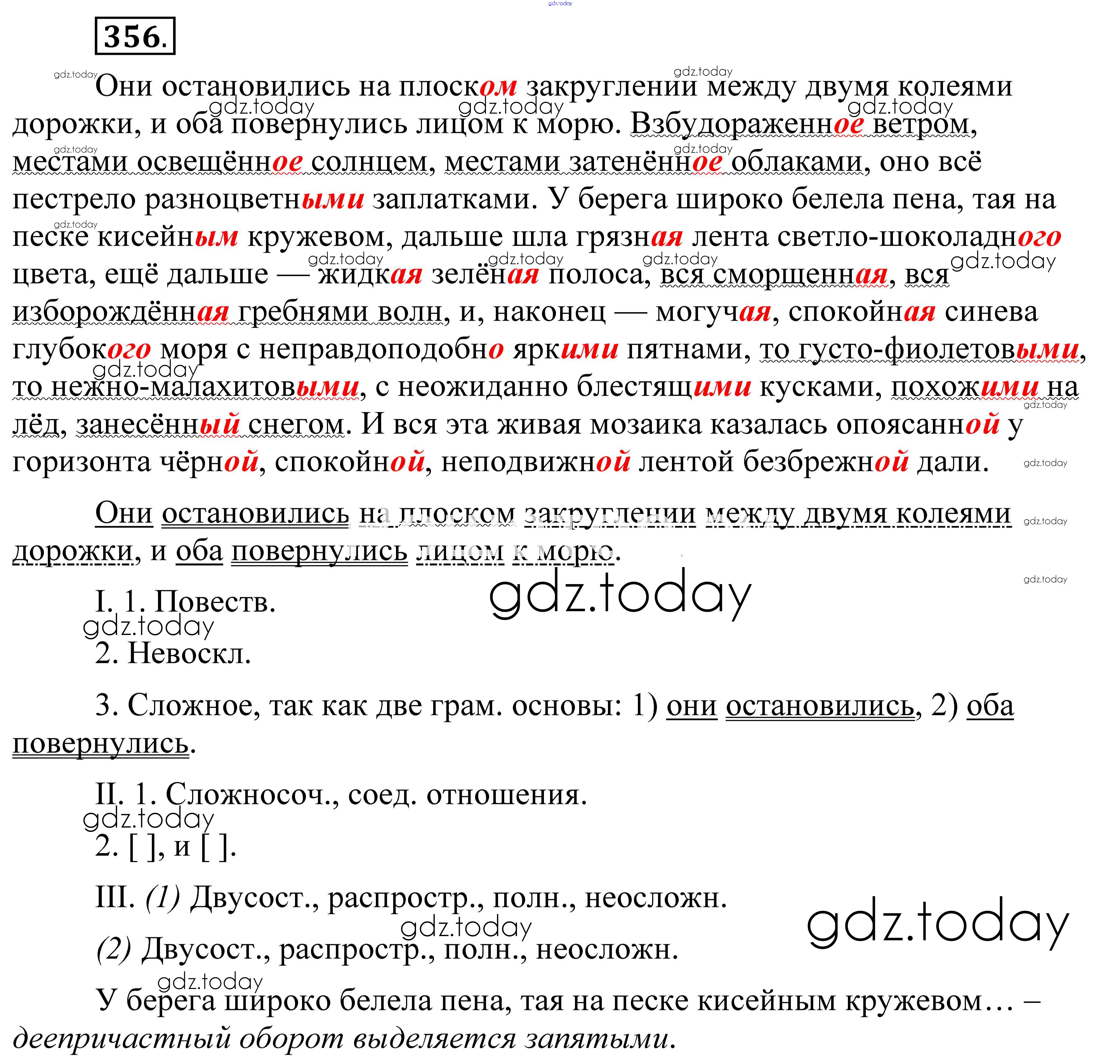 На страницах сайта gdz.today вы найдете учебный и вспомогательный материал, направленный на улучшения знаний школьной программы. ГДЗ - онлайн мир знаний Решение. Упражнения 356 Практике по Русскому языку для 8 класса Пичугов, Еремеева Дрофа, Дрофа Вертикаль 2016, 2022