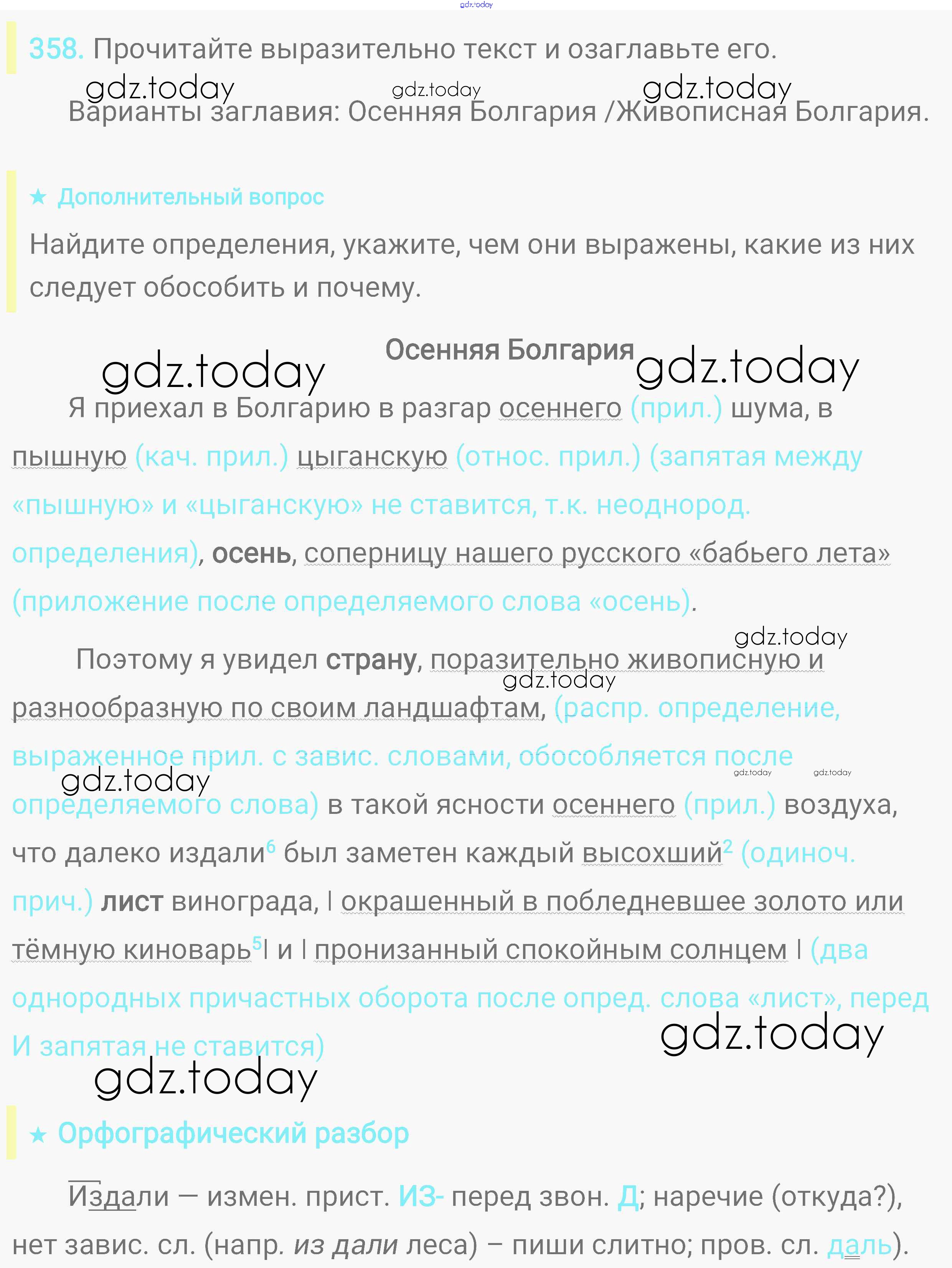 На страницах сайта gdz.today вы найдете учебный и вспомогательный материал, направленный на улучшения знаний школьной программы. ГДЗ - онлайн мир знаний Решение. Упражнения 358 Практике по Русскому языку для 8 класса Пичугов, Еремеева Дрофа, Дрофа Вертикаль 2016, 2022