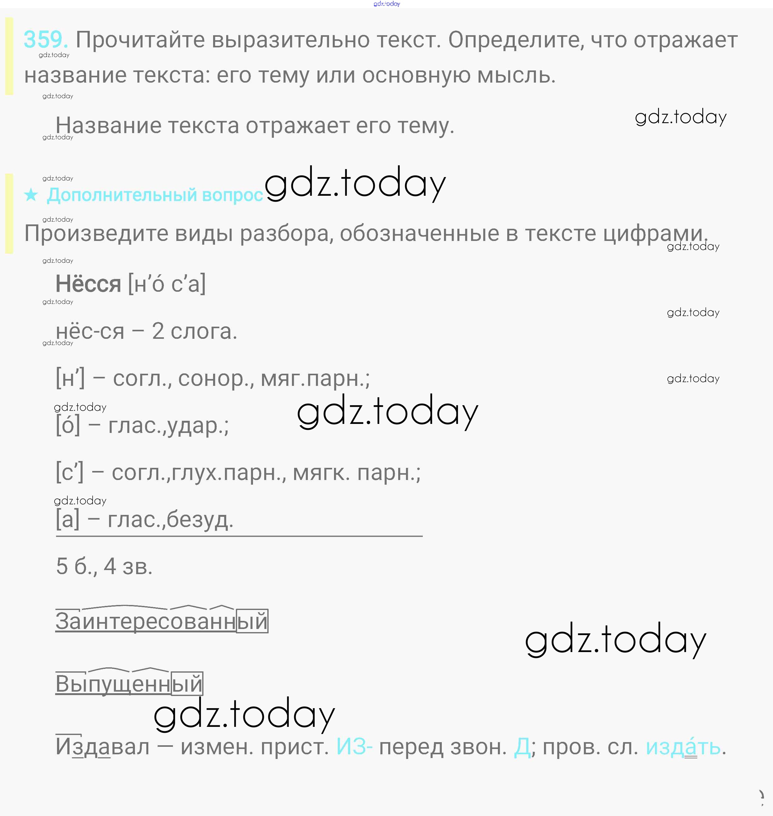На страницах сайта gdz.today вы найдете учебный и вспомогательный материал, направленный на улучшения знаний школьной программы. ГДЗ - онлайн мир знаний Решение. Упражнения 359 Практике по Русскому языку для 8 класса Пичугов, Еремеева Дрофа, Дрофа Вертикаль 2016, 2022