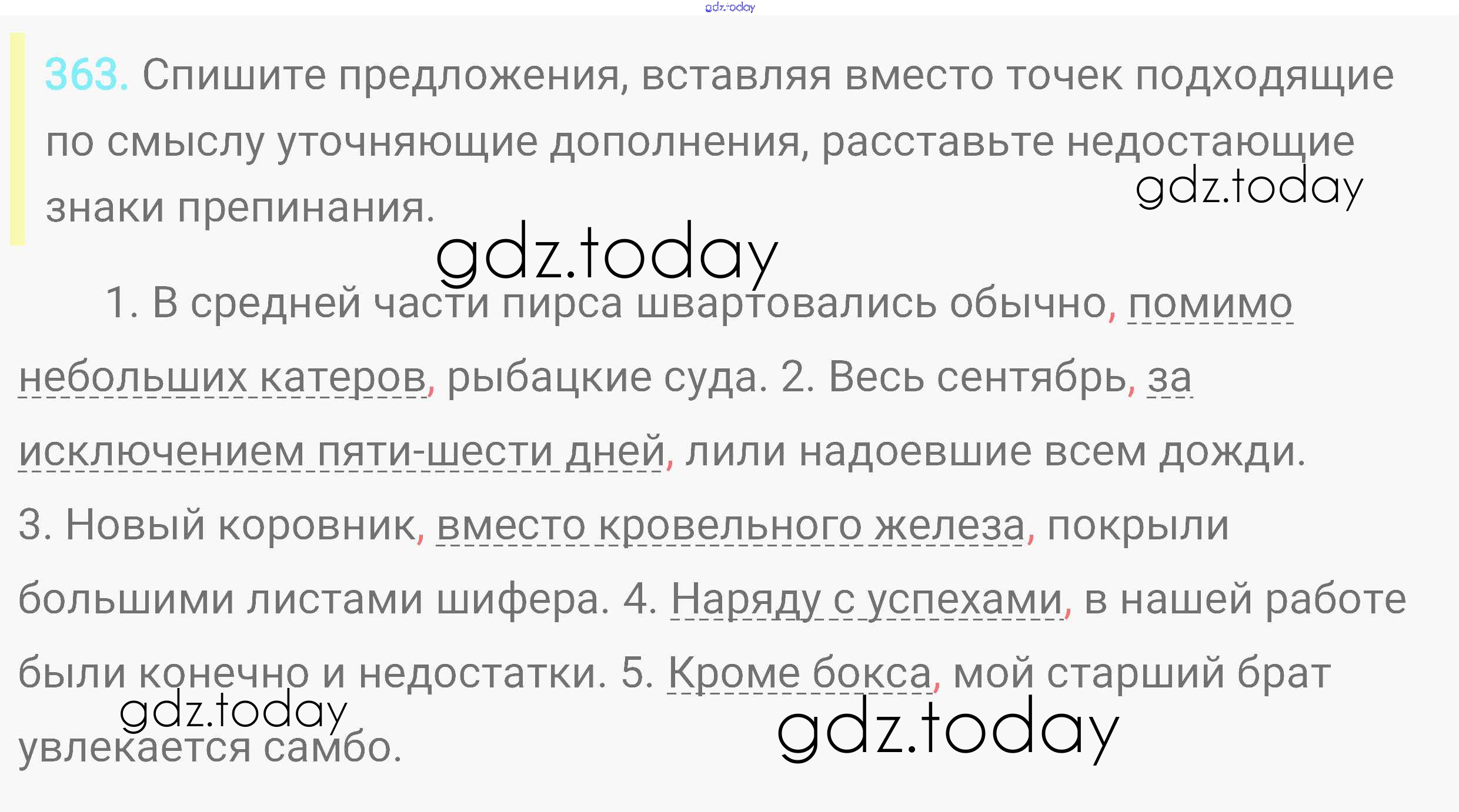 На страницах сайта gdz.today вы найдете учебный и вспомогательный материал, направленный на улучшения знаний школьной программы. ГДЗ - онлайн мир знаний Решение. Упражнения 363 Практике по Русскому языку для 8 класса Пичугов, Еремеева Дрофа, Дрофа Вертикаль 2016, 2022