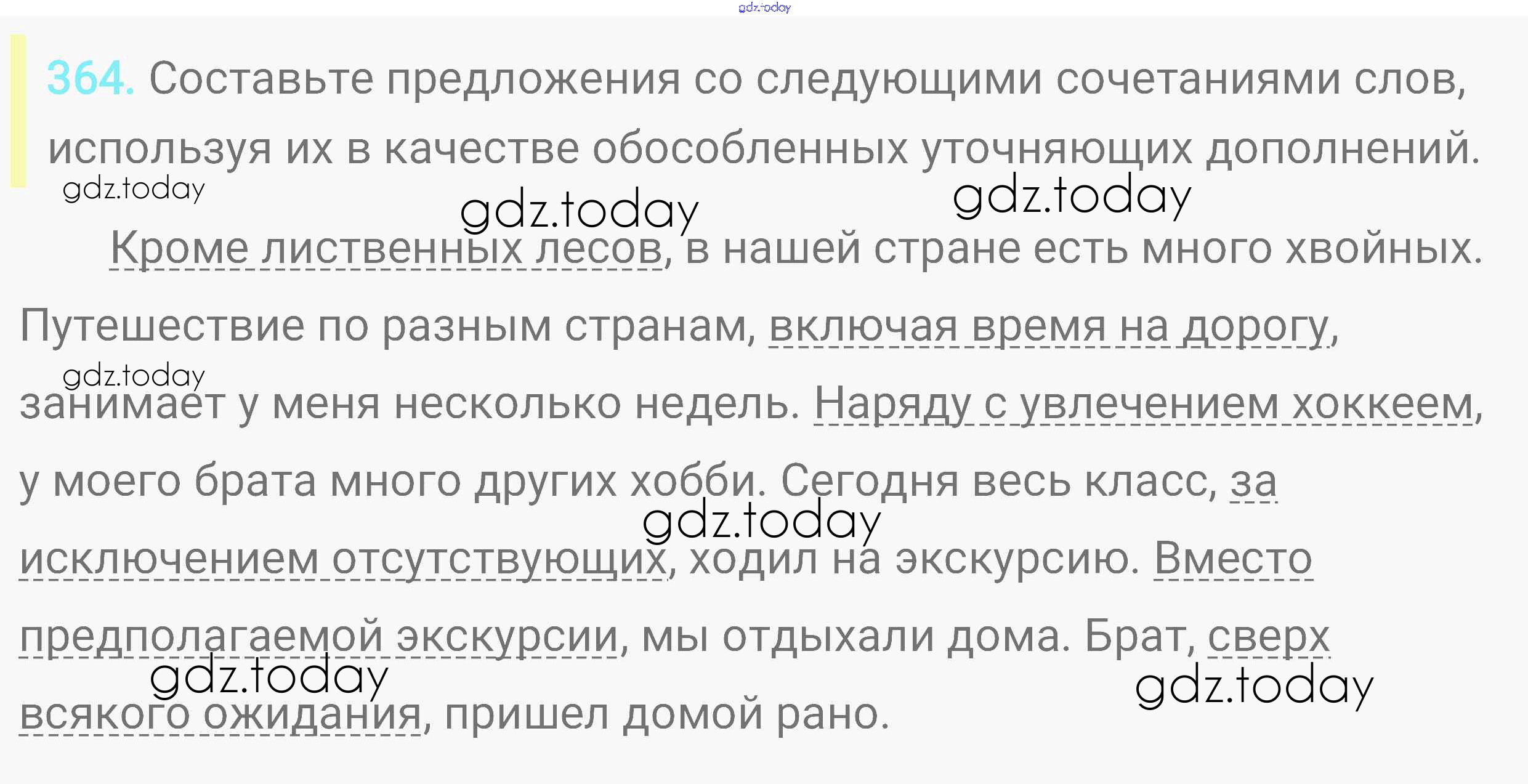 На страницах сайта gdz.today вы найдете учебный и вспомогательный материал, направленный на улучшения знаний школьной программы. ГДЗ - онлайн мир знаний Решение. Упражнения 364 Практике по Русскому языку для 8 класса Пичугов, Еремеева Дрофа, Дрофа Вертикаль 2016, 2022