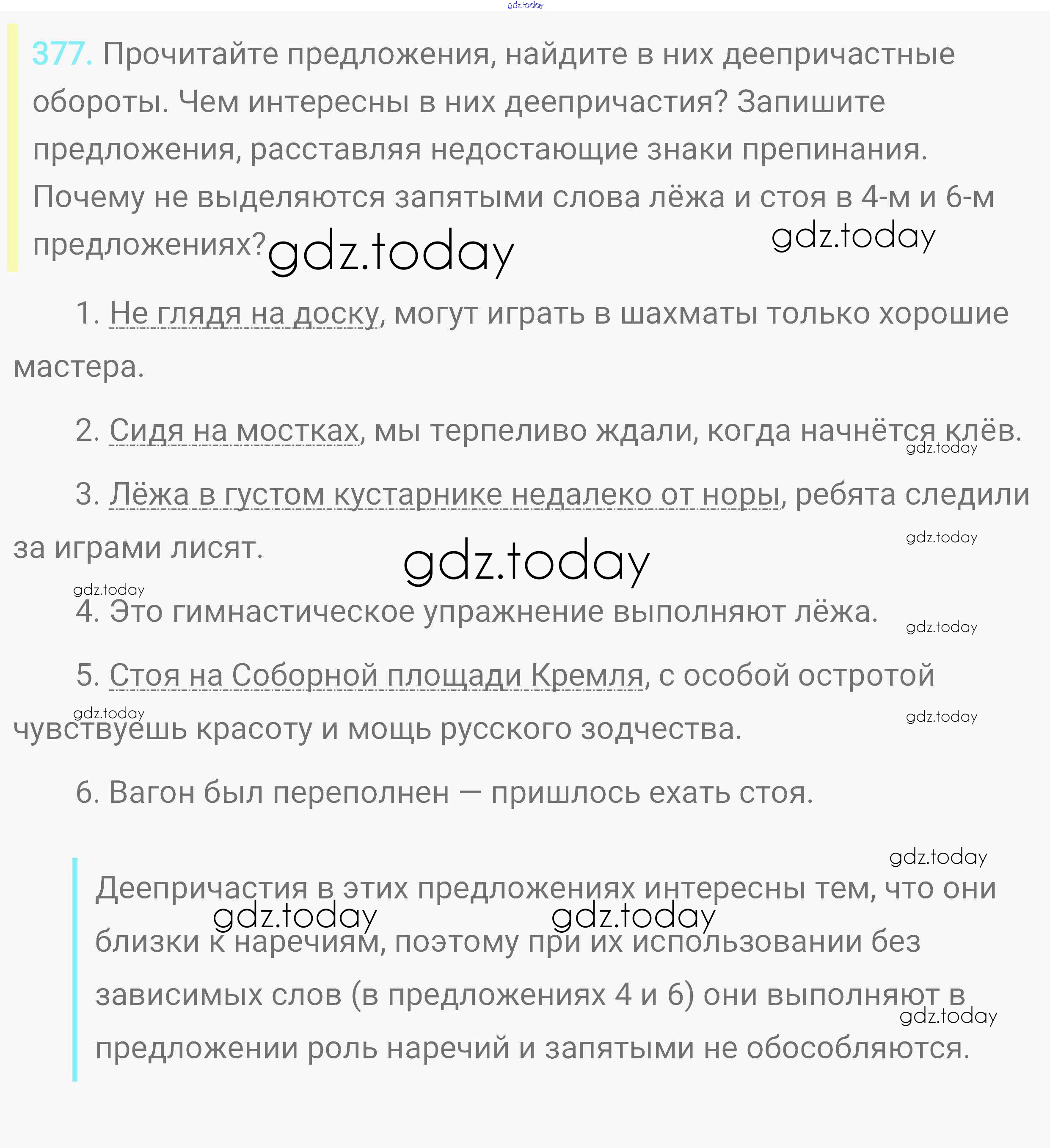 На страницах сайта gdz.today вы найдете учебный и вспомогательный материал, направленный на улучшения знаний школьной программы. ГДЗ - онлайн мир знаний Решение. Упражнения 377 Практике по Русскому языку для 8 класса Пичугов, Еремеева Дрофа, Дрофа Вертикаль 2016, 2022