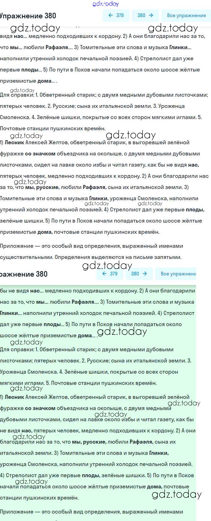 На страницах сайта gdz.today вы найдете учебный и вспомогательный материал, направленный на улучшения знаний школьной программы. ГДЗ - онлайн мир знаний Решение. Упражнения 380 Практике по Русскому языку для 8 класса Пичугов, Еремеева Дрофа, Дрофа Вертикаль 2016, 2022