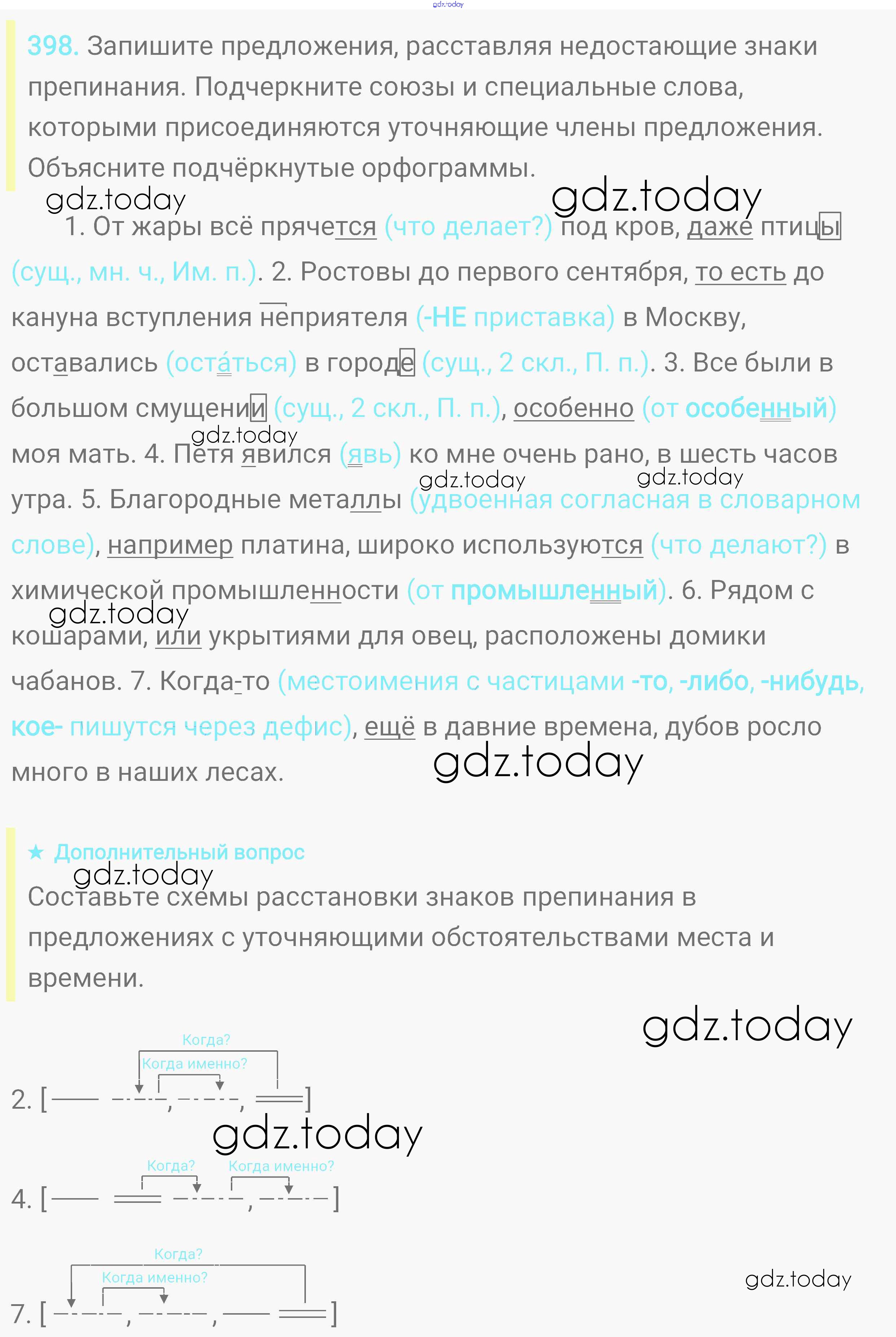 На страницах сайта gdz.today вы найдете учебный и вспомогательный материал, направленный на улучшения знаний школьной программы. ГДЗ - онлайн мир знаний Решение. Упражнения 398 Практике по Русскому языку для 8 класса Пичугов, Еремеева Дрофа, Дрофа Вертикаль 2016, 2022