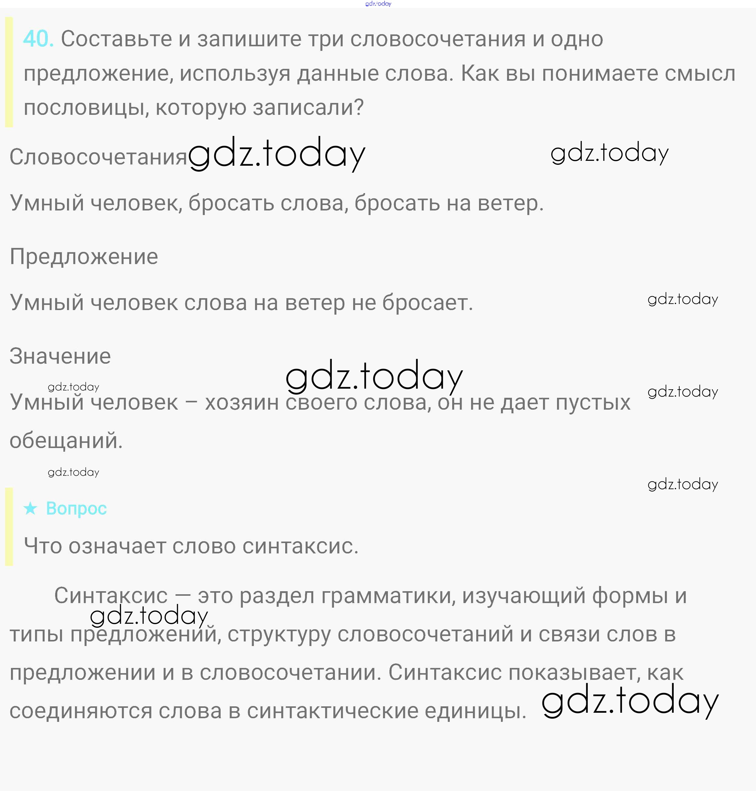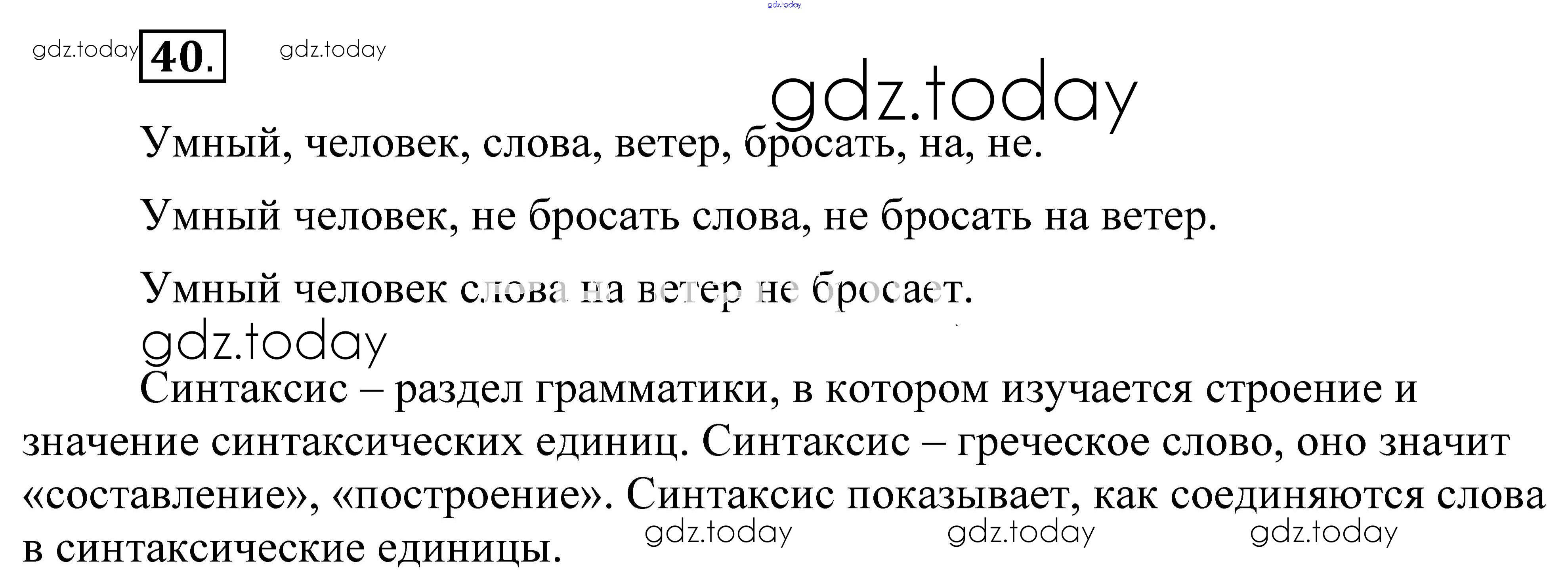 На страницах сайта gdz.today вы найдете учебный и вспомогательный материал, направленный на улучшения знаний школьной программы. ГДЗ - онлайн мир знаний Решение. Упражнения 40 Практике по Русскому языку для 8 класса Пичугов, Еремеева Дрофа, Дрофа Вертикаль 2016, 2022