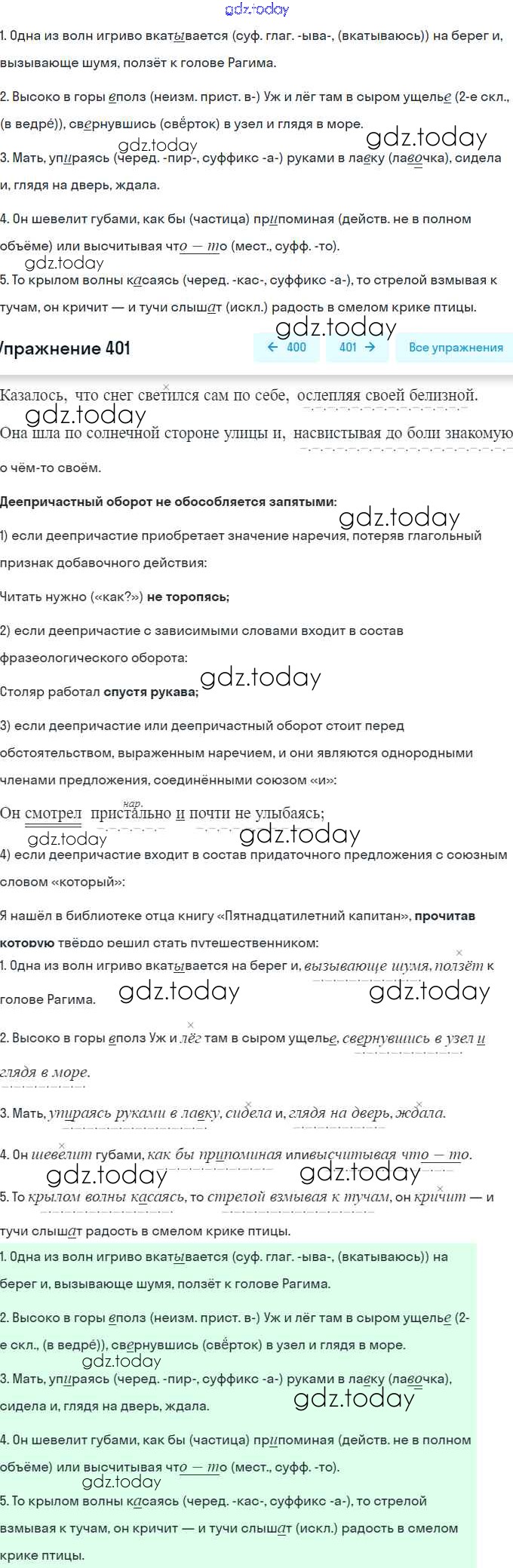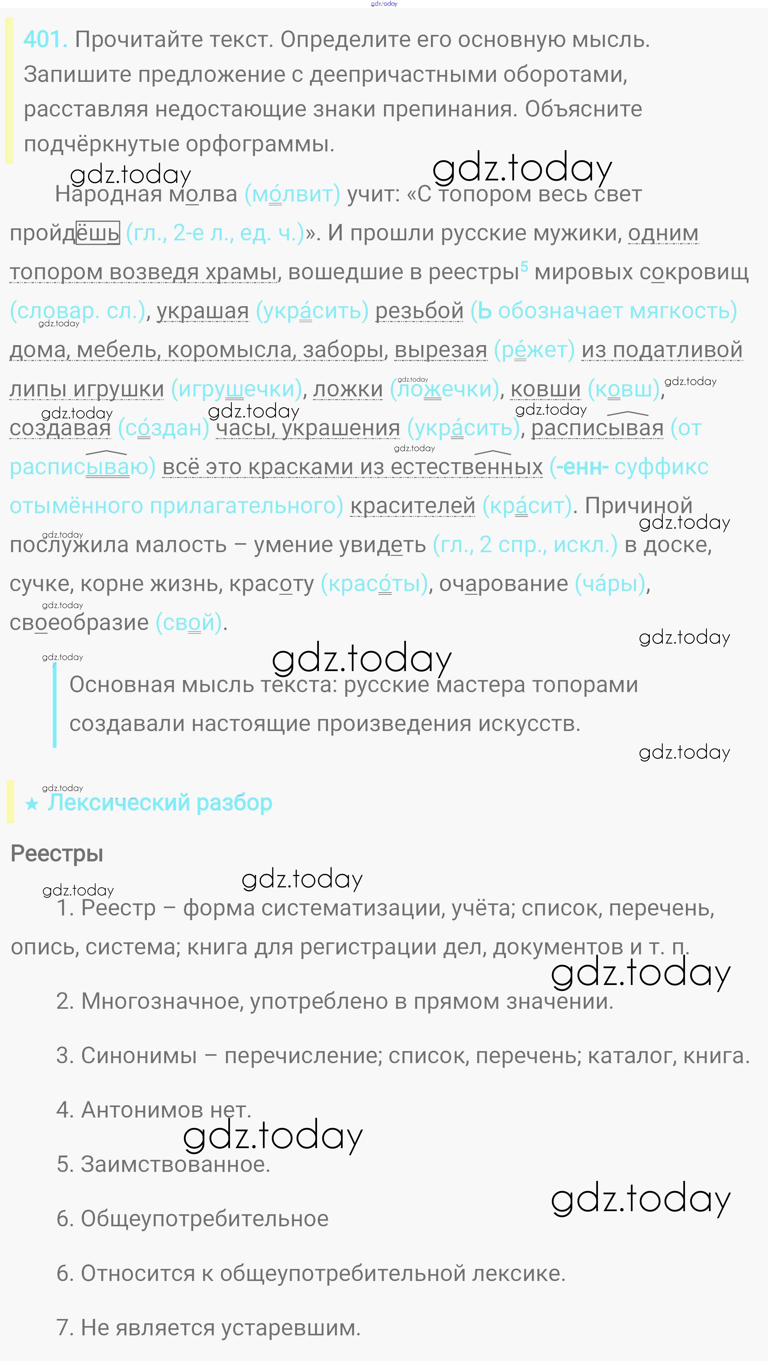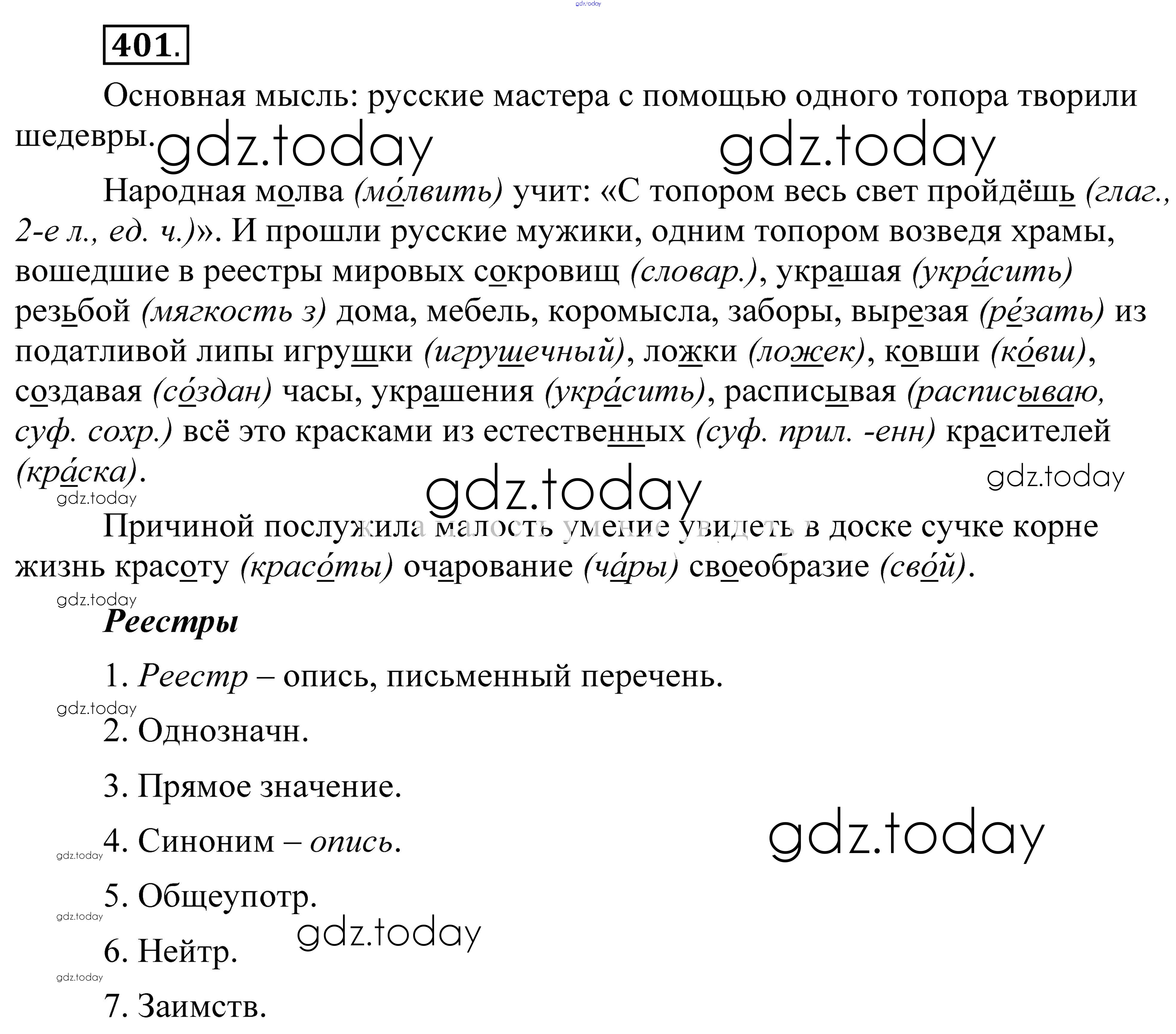 На страницах сайта gdz.today вы найдете учебный и вспомогательный материал, направленный на улучшения знаний школьной программы. ГДЗ - онлайн мир знаний Решение. Упражнения 401 Практике по Русскому языку для 8 класса Пичугов, Еремеева Дрофа, Дрофа Вертикаль 2016, 2022