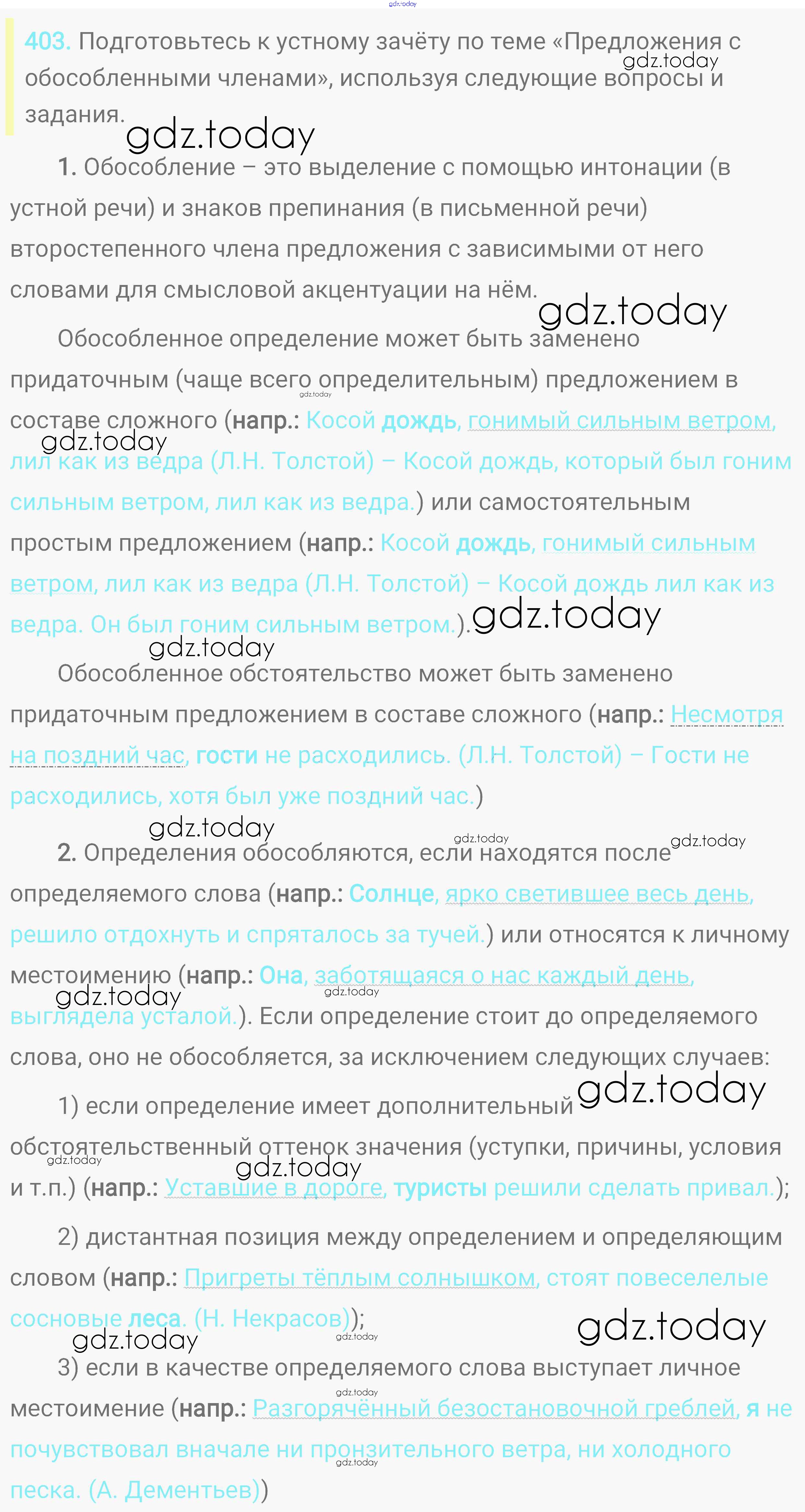 На страницах сайта gdz.today вы найдете учебный и вспомогательный материал, направленный на улучшения знаний школьной программы. ГДЗ - онлайн мир знаний Решение. Упражнения 403 Практике по Русскому языку для 8 класса Пичугов, Еремеева Дрофа, Дрофа Вертикаль 2016, 2022