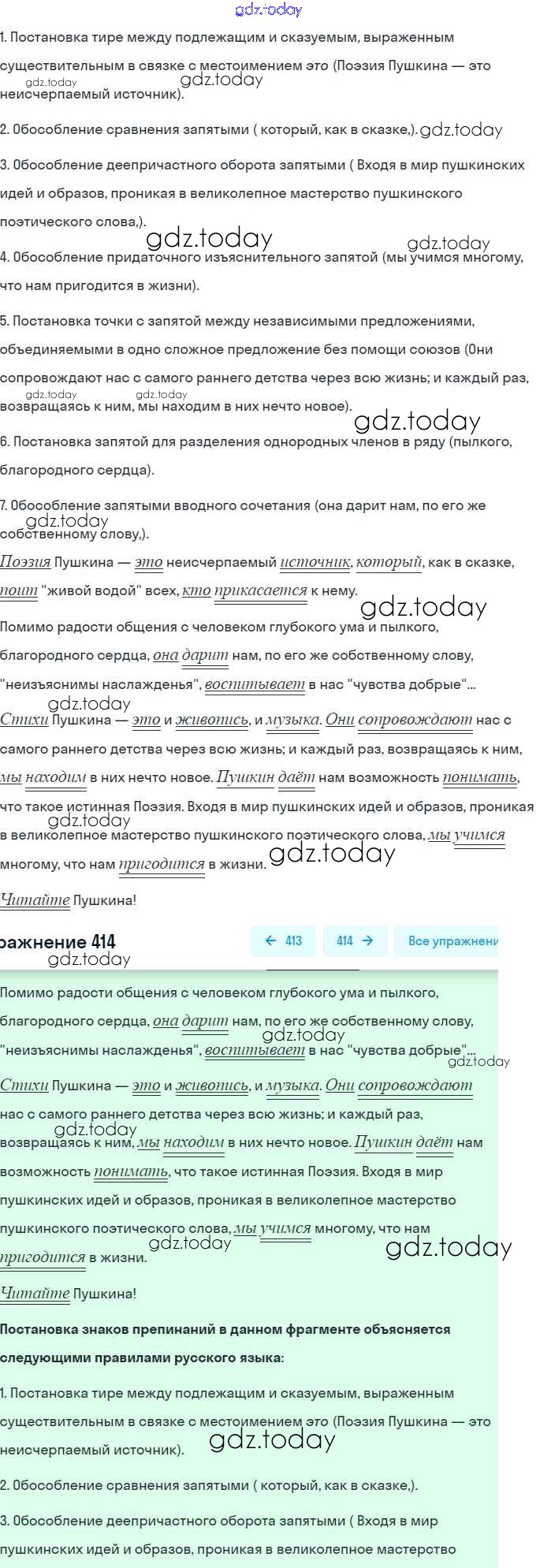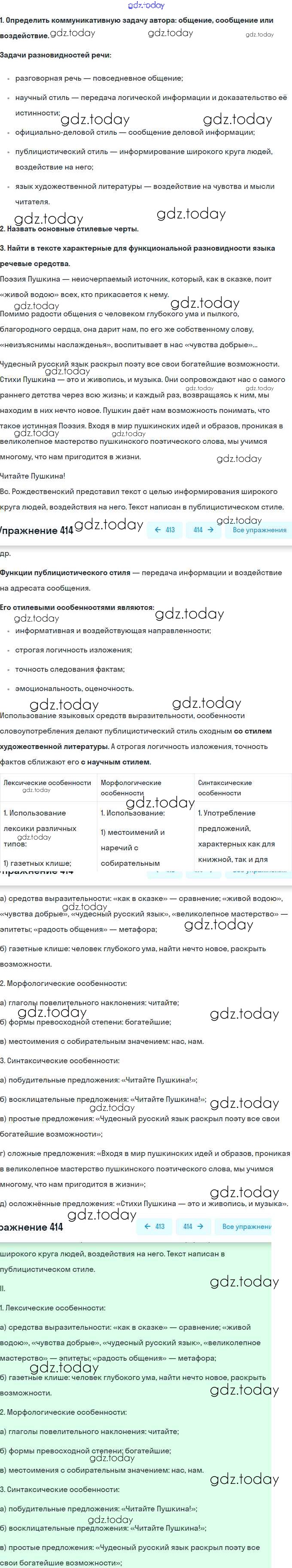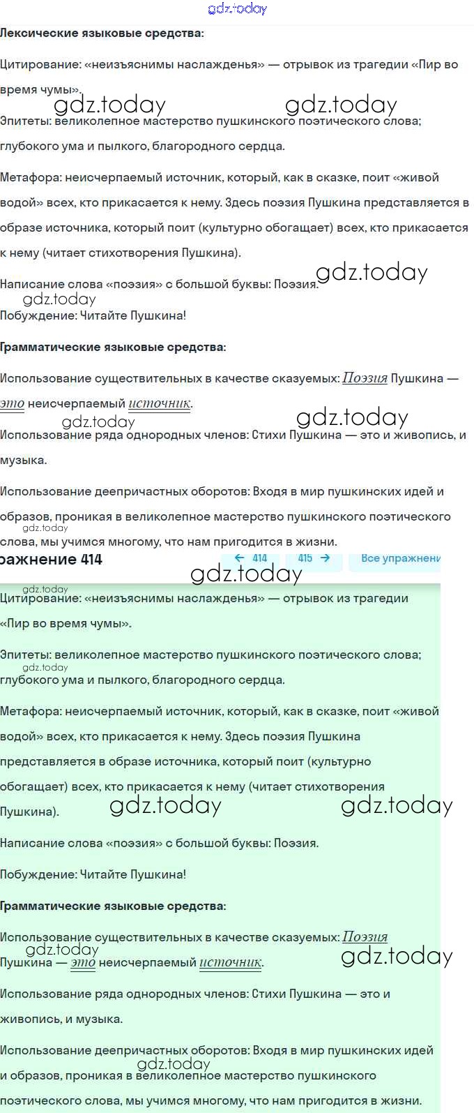 На страницах сайта gdz.today вы найдете учебный и вспомогательный материал, направленный на улучшения знаний школьной программы. ГДЗ - онлайн мир знаний Решение. Упражнения 414 Практике по Русскому языку для 8 класса Пичугов, Еремеева Дрофа, Дрофа Вертикаль 2016, 2022