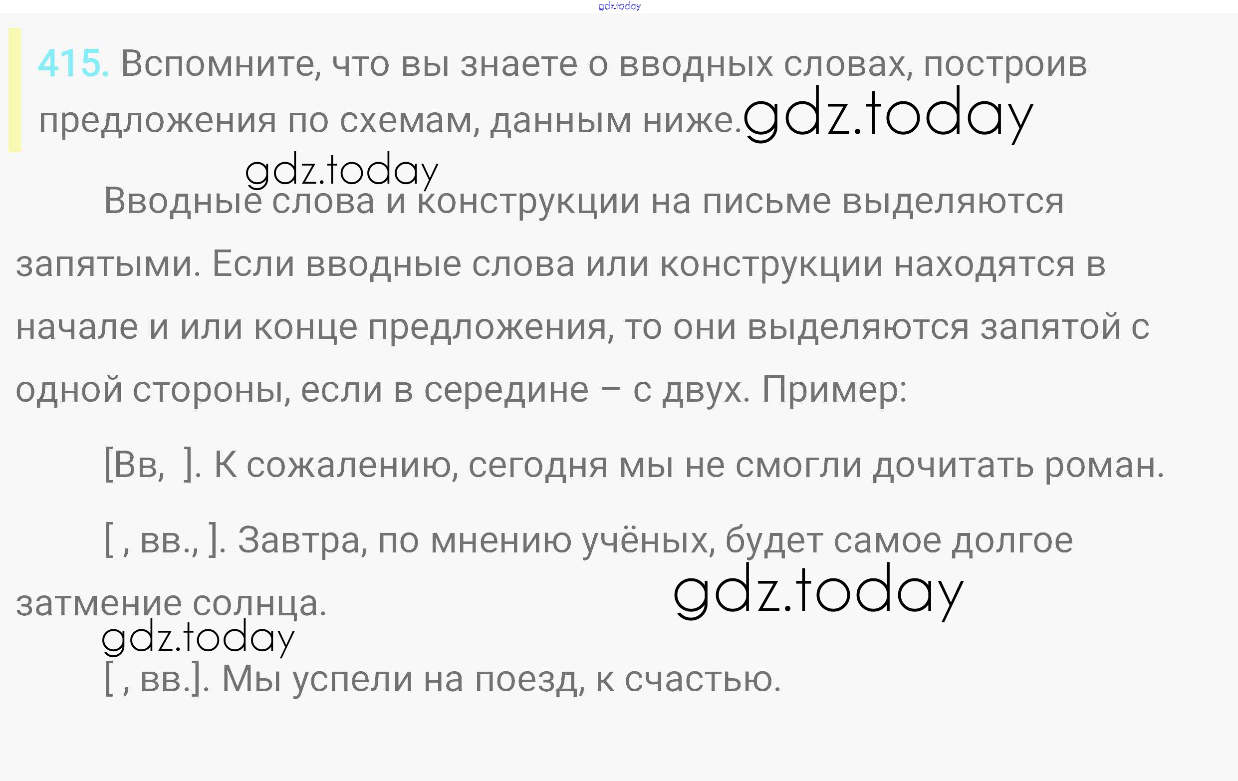 На страницах сайта gdz.today вы найдете учебный и вспомогательный материал, направленный на улучшения знаний школьной программы. ГДЗ - онлайн мир знаний Решение. Упражнения 415 Практике по Русскому языку для 8 класса Пичугов, Еремеева Дрофа, Дрофа Вертикаль 2016, 2022