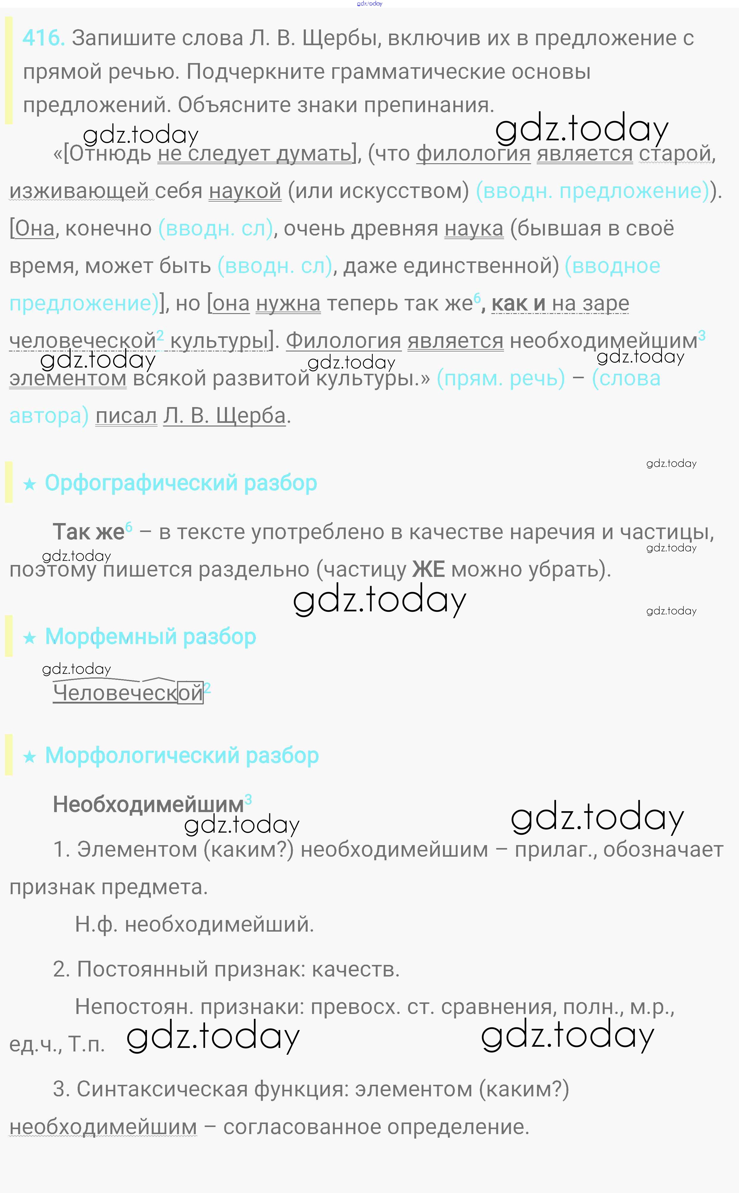 На страницах сайта gdz.today вы найдете учебный и вспомогательный материал, направленный на улучшения знаний школьной программы. ГДЗ - онлайн мир знаний Решение. Упражнения 416 Практике по Русскому языку для 8 класса Пичугов, Еремеева Дрофа, Дрофа Вертикаль 2016, 2022