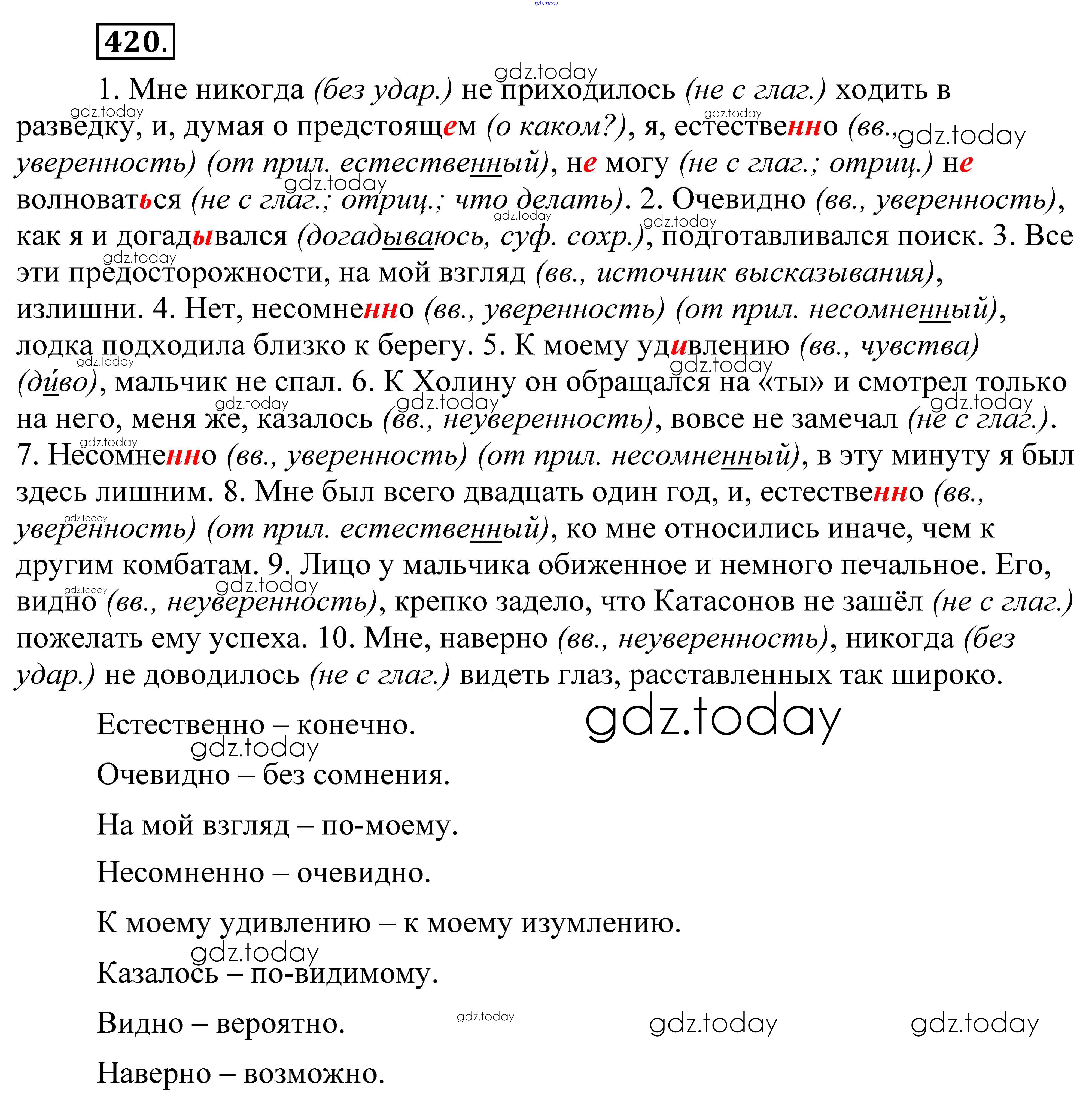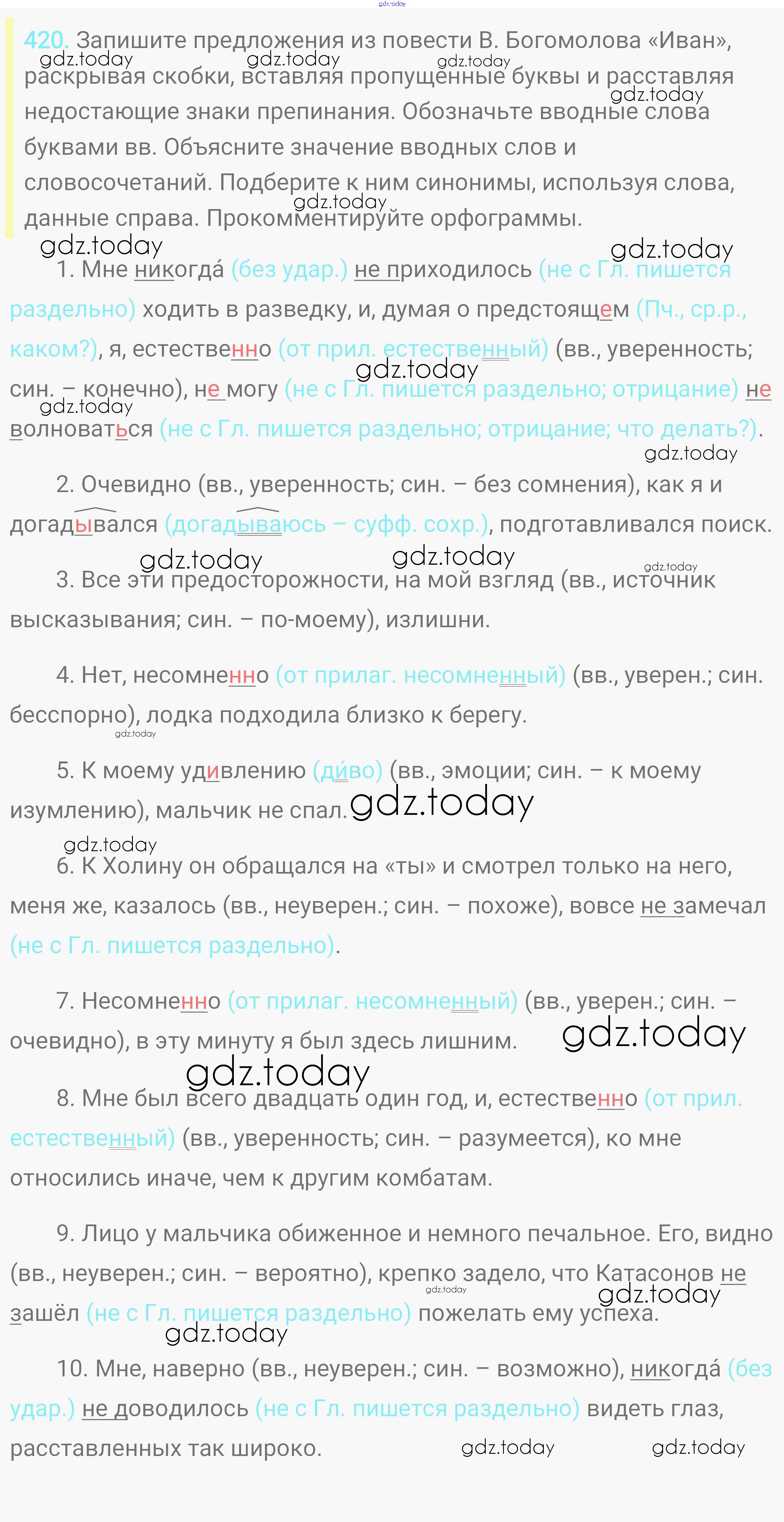 На страницах сайта gdz.today вы найдете учебный и вспомогательный материал, направленный на улучшения знаний школьной программы. ГДЗ - онлайн мир знаний Решение. Упражнения 420 Практике по Русскому языку для 8 класса Пичугов, Еремеева Дрофа, Дрофа Вертикаль 2016, 2022