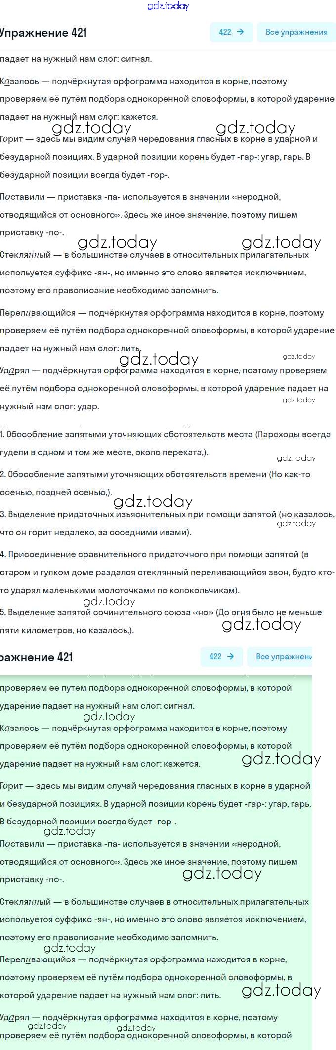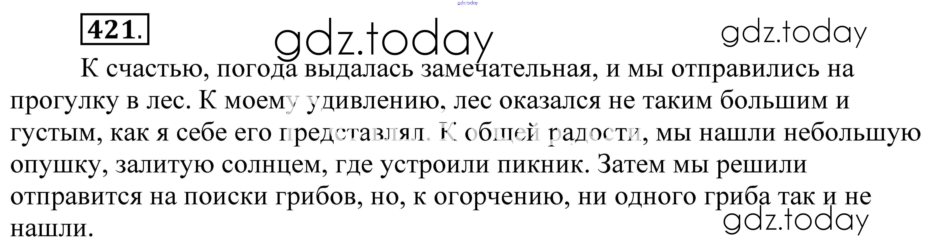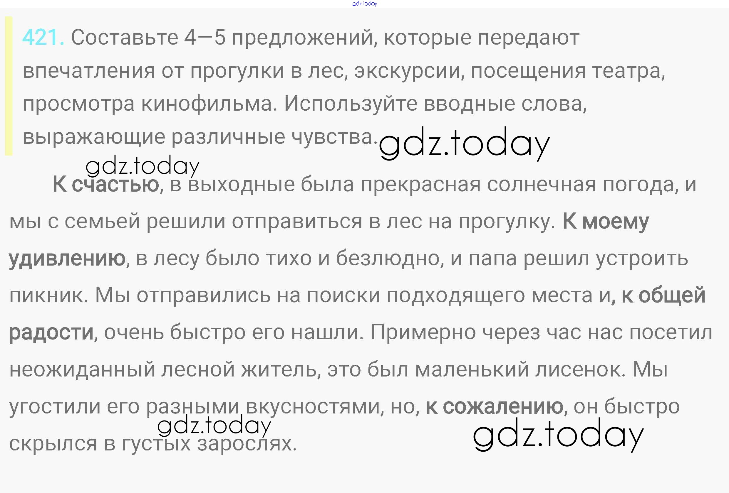 На страницах сайта gdz.today вы найдете учебный и вспомогательный материал, направленный на улучшения знаний школьной программы. ГДЗ - онлайн мир знаний Решение. Упражнения 421 Практике по Русскому языку для 8 класса Пичугов, Еремеева Дрофа, Дрофа Вертикаль 2016, 2022