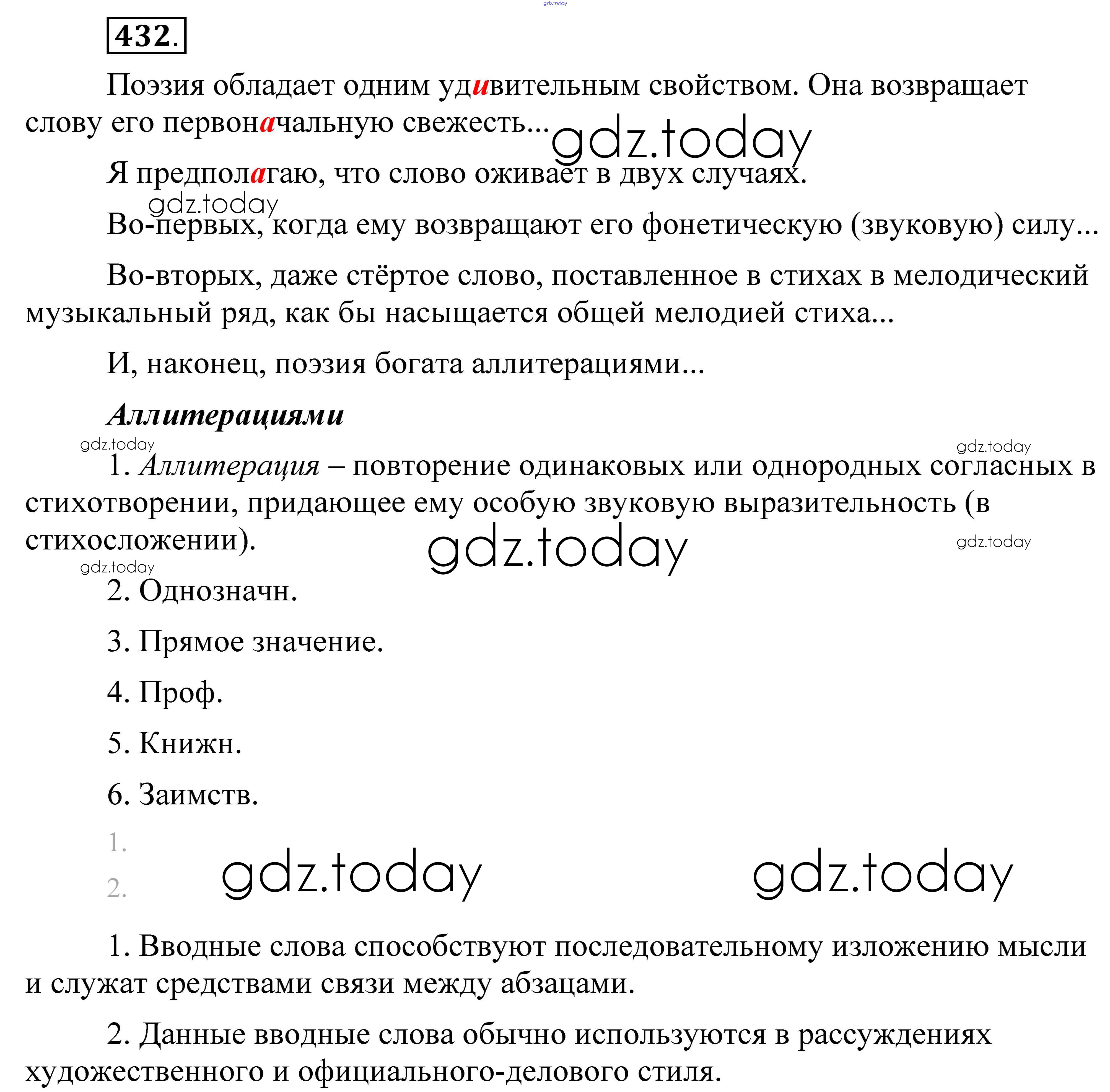 На страницах сайта gdz.today вы найдете учебный и вспомогательный материал, направленный на улучшения знаний школьной программы. ГДЗ - онлайн мир знаний Решение. Упражнения 432 Практике по Русскому языку для 8 класса Пичугов, Еремеева Дрофа, Дрофа Вертикаль 2016, 2022