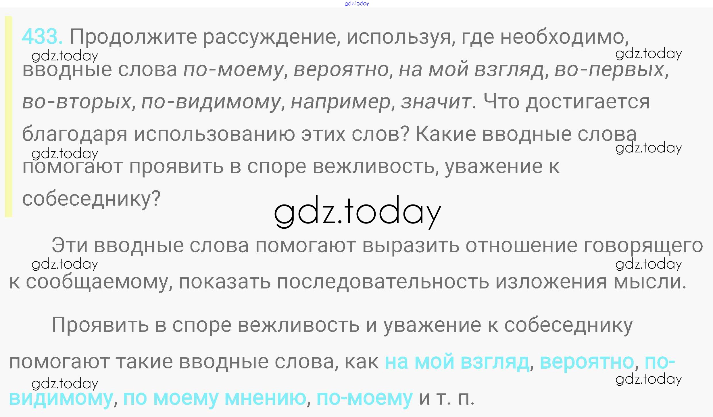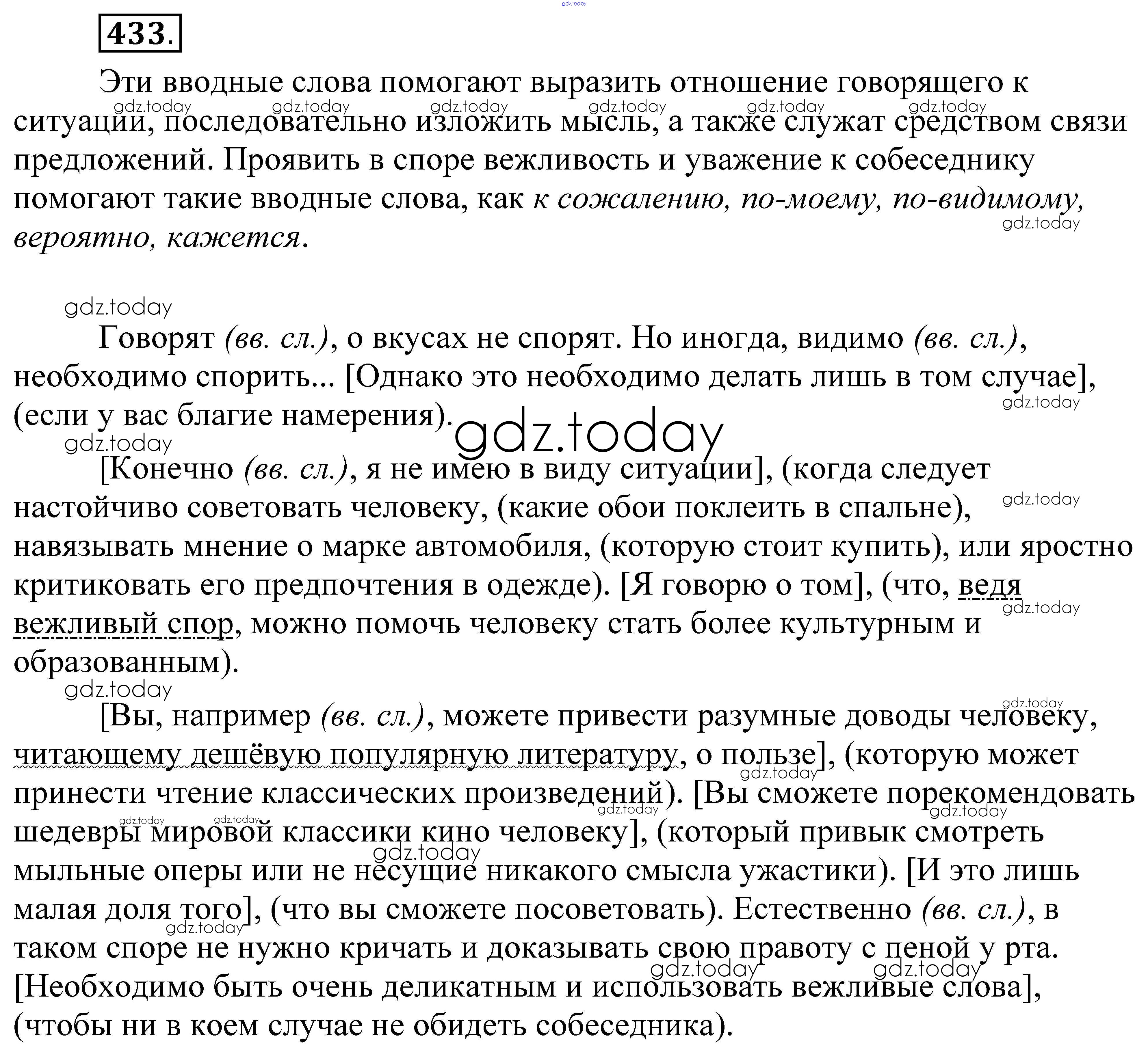 На страницах сайта gdz.today вы найдете учебный и вспомогательный материал, направленный на улучшения знаний школьной программы. ГДЗ - онлайн мир знаний Решение. Упражнения 433 Практике по Русскому языку для 8 класса Пичугов, Еремеева Дрофа, Дрофа Вертикаль 2016, 2022