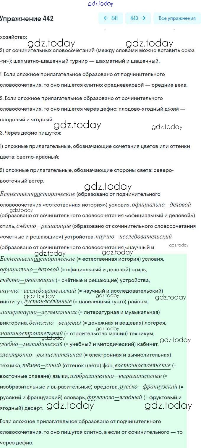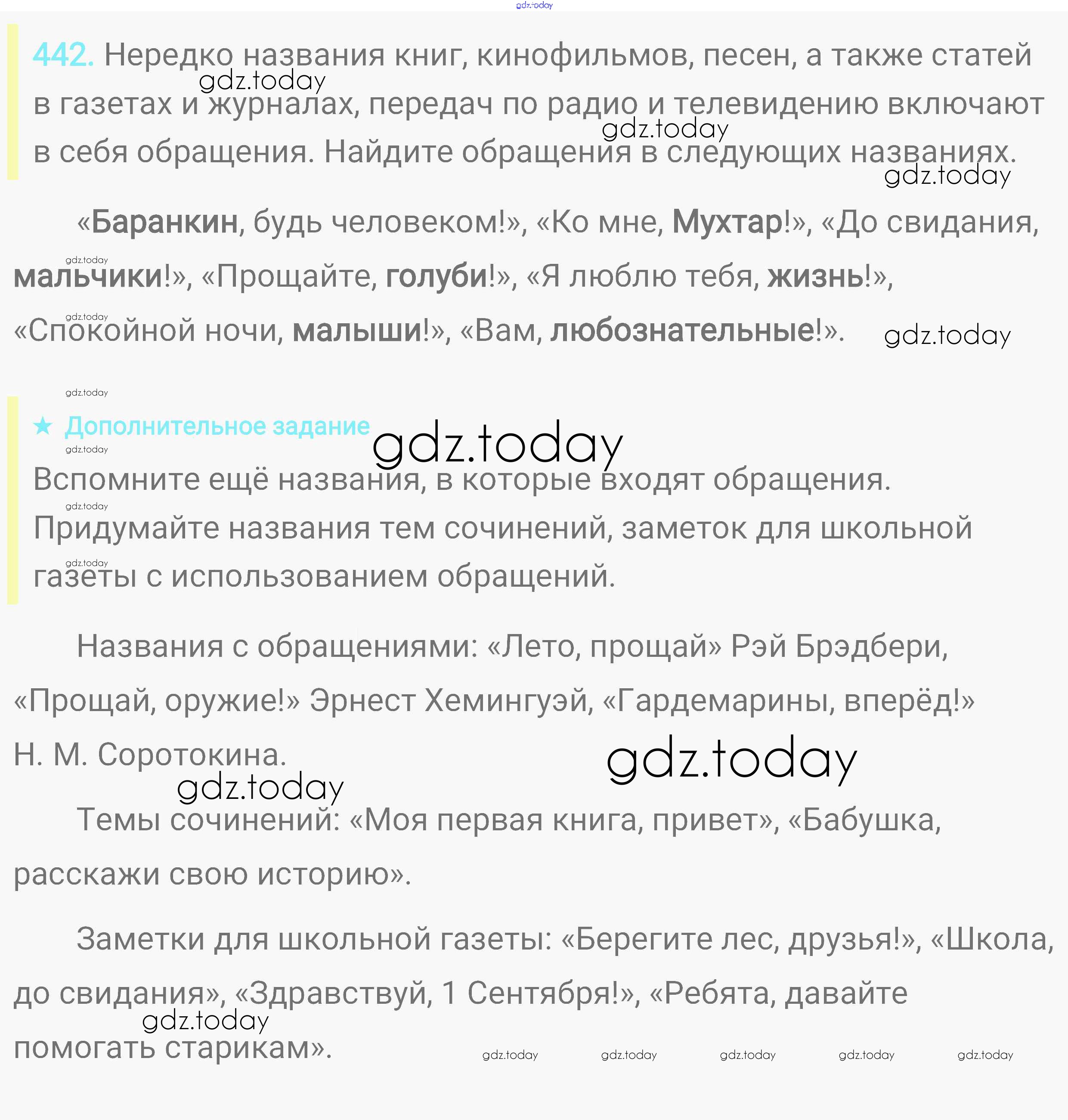 На страницах сайта gdz.today вы найдете учебный и вспомогательный материал, направленный на улучшения знаний школьной программы. ГДЗ - онлайн мир знаний Решение. Упражнения 442 Практике по Русскому языку для 8 класса Пичугов, Еремеева Дрофа, Дрофа Вертикаль 2016, 2022
