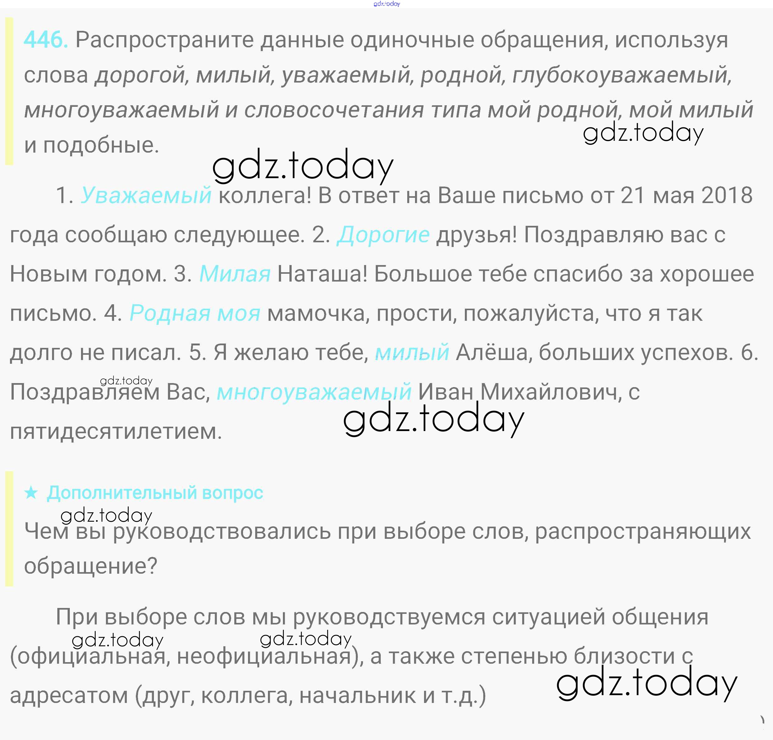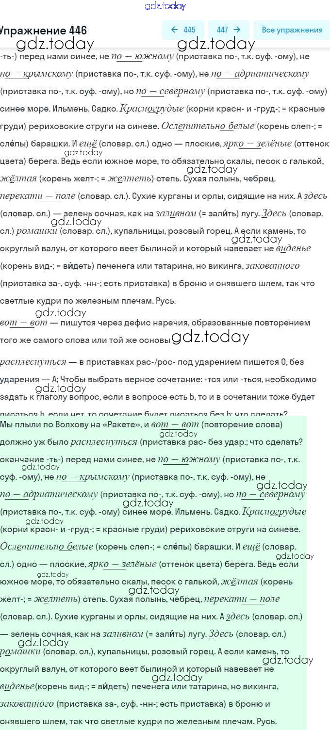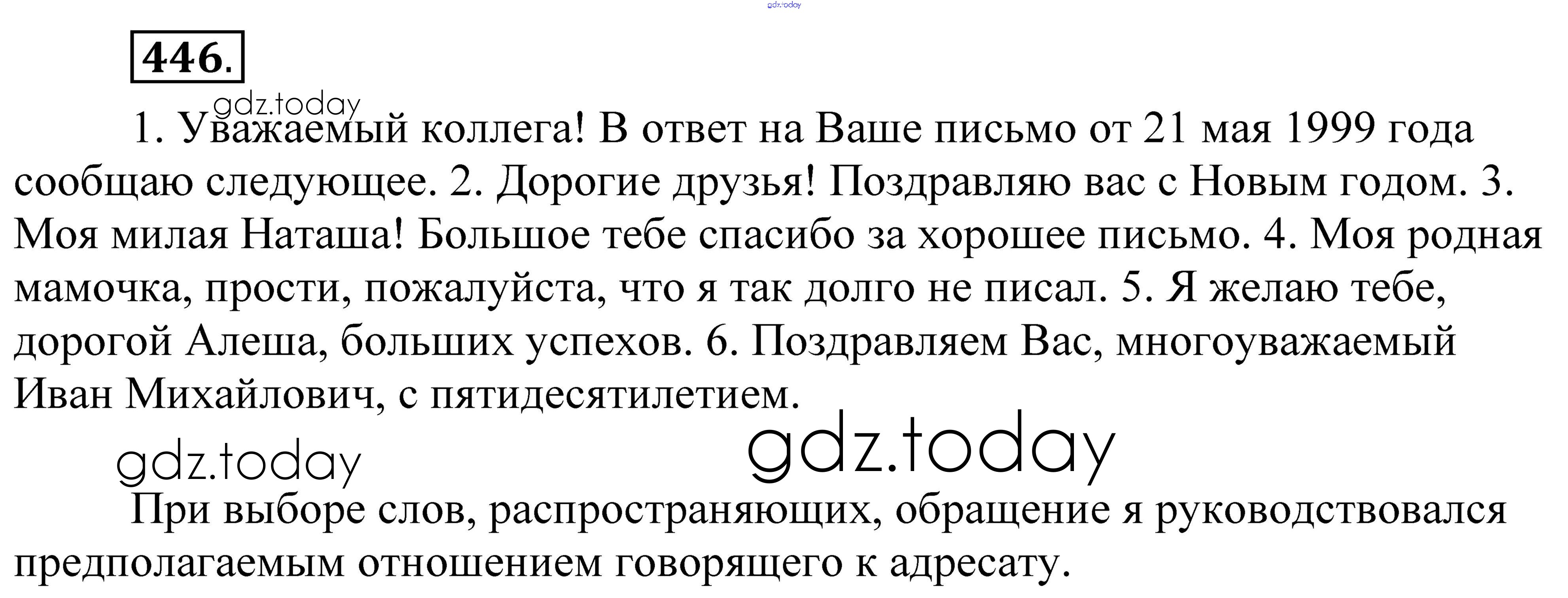 На страницах сайта gdz.today вы найдете учебный и вспомогательный материал, направленный на улучшения знаний школьной программы. ГДЗ - онлайн мир знаний Решение. Упражнения 446 Практике по Русскому языку для 8 класса Пичугов, Еремеева Дрофа, Дрофа Вертикаль 2016, 2022