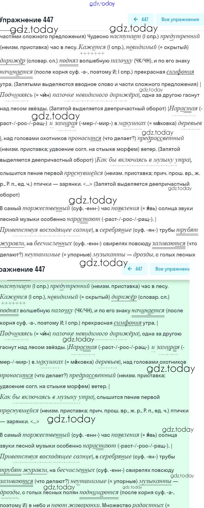 На страницах сайта gdz.today вы найдете учебный и вспомогательный материал, направленный на улучшения знаний школьной программы. ГДЗ - онлайн мир знаний Решение. Упражнения 447 Практике по Русскому языку для 8 класса Пичугов, Еремеева Дрофа, Дрофа Вертикаль 2016, 2022
