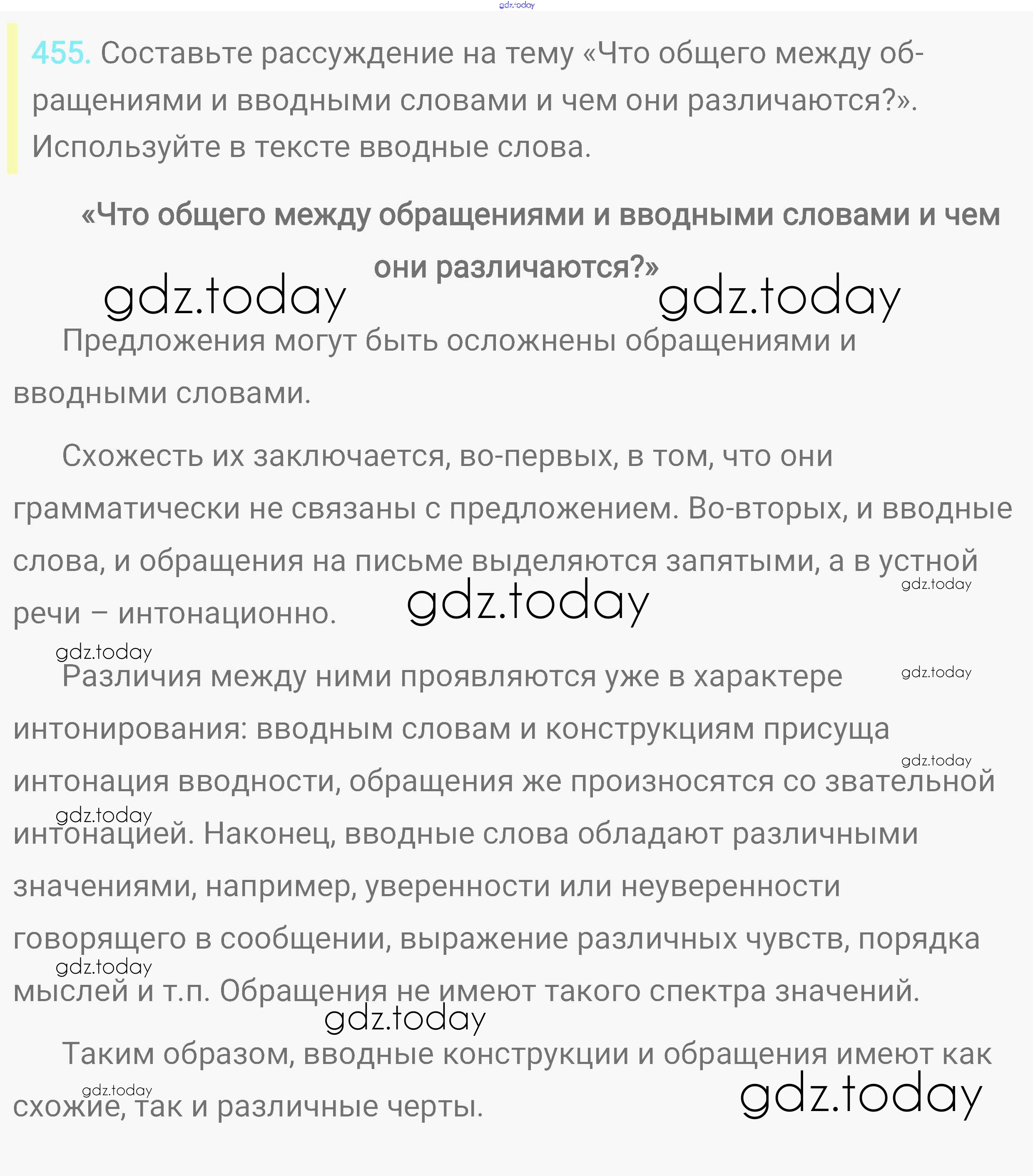 На страницах сайта gdz.today вы найдете учебный и вспомогательный материал, направленный на улучшения знаний школьной программы. ГДЗ - онлайн мир знаний Решение. Упражнения 455 Практике по Русскому языку для 8 класса Пичугов, Еремеева Дрофа, Дрофа Вертикаль 2016, 2022