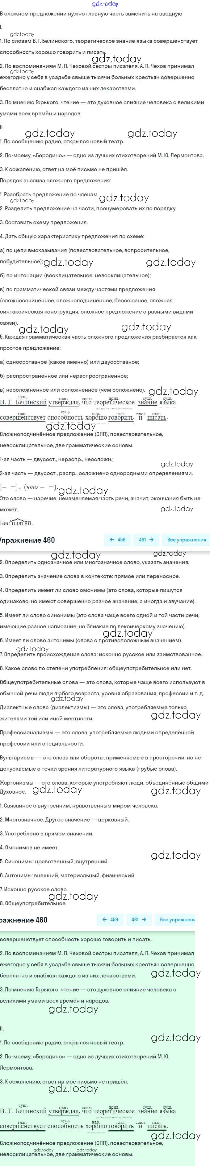 На страницах сайта gdz.today вы найдете учебный и вспомогательный материал, направленный на улучшения знаний школьной программы. ГДЗ - онлайн мир знаний Решение. Упражнения 460 Практике по Русскому языку для 8 класса Пичугов, Еремеева Дрофа, Дрофа Вертикаль 2016, 2022