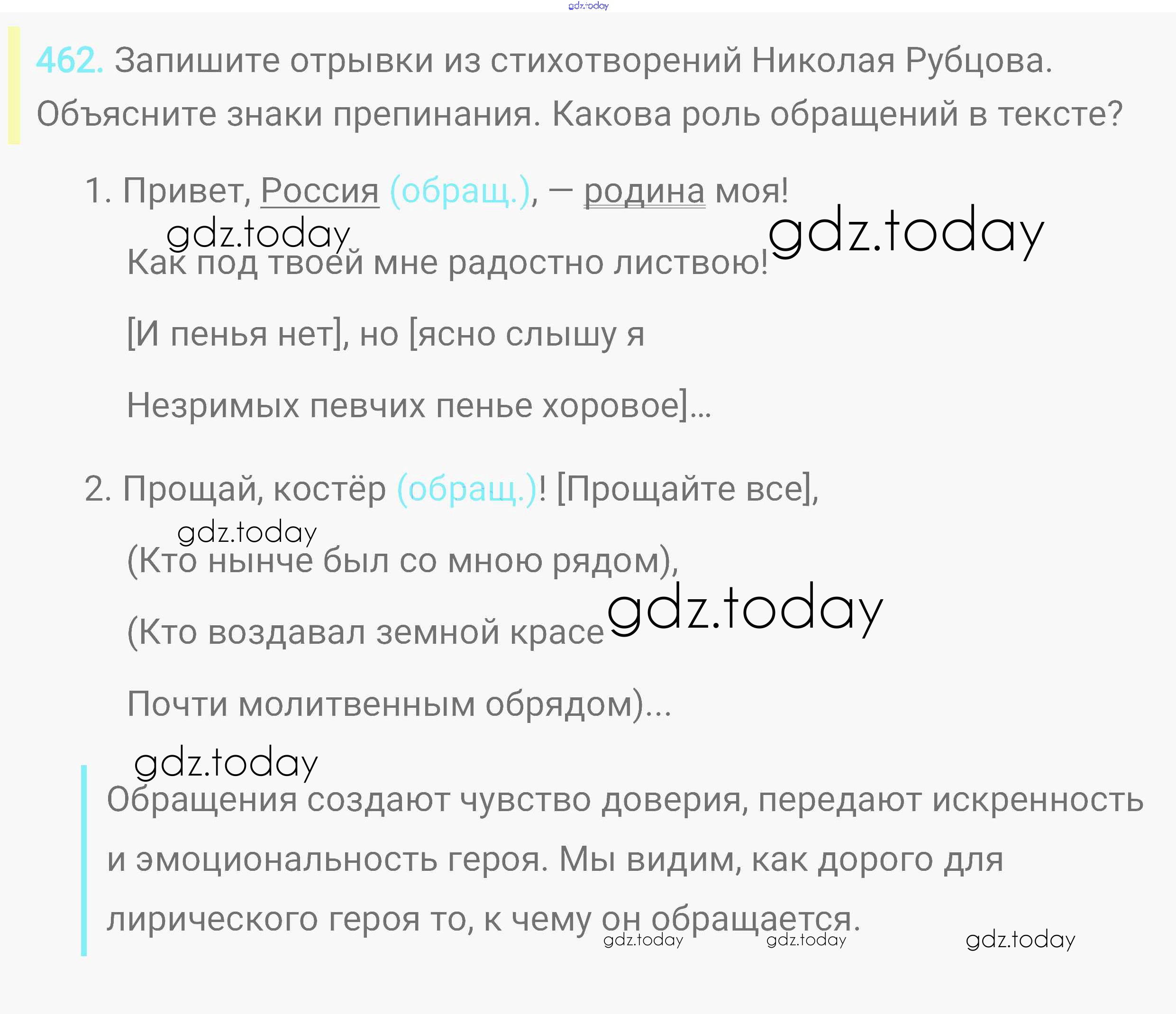 На страницах сайта gdz.today вы найдете учебный и вспомогательный материал, направленный на улучшения знаний школьной программы. ГДЗ - онлайн мир знаний Решение. Упражнения 462 Практике по Русскому языку для 8 класса Пичугов, Еремеева Дрофа, Дрофа Вертикаль 2016, 2022