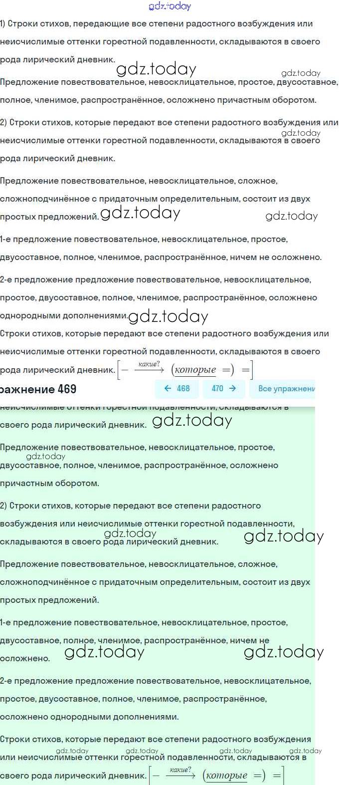 На страницах сайта gdz.today вы найдете учебный и вспомогательный материал, направленный на улучшения знаний школьной программы. ГДЗ - онлайн мир знаний Решение. Упражнения 469 Практике по Русскому языку для 8 класса Пичугов, Еремеева Дрофа, Дрофа Вертикаль 2016, 2022