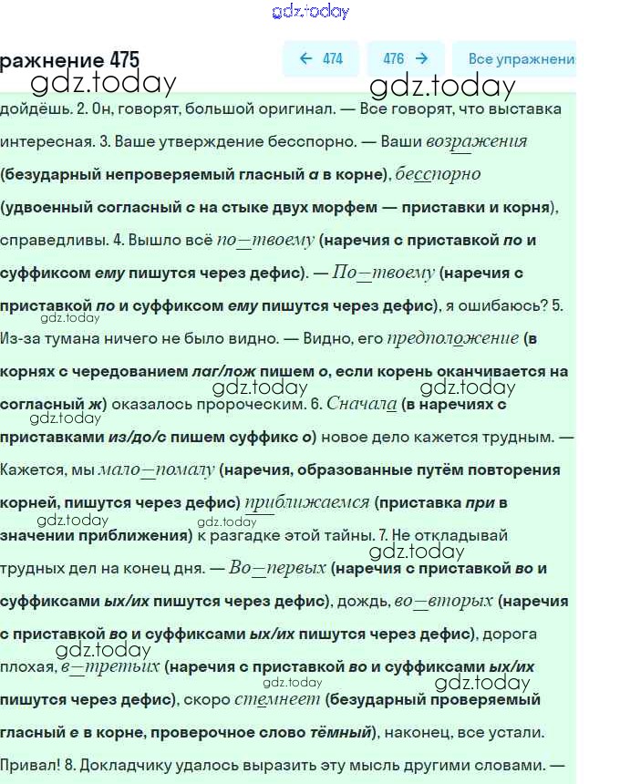 На страницах сайта gdz.today вы найдете учебный и вспомогательный материал, направленный на улучшения знаний школьной программы. ГДЗ - онлайн мир знаний Решение. Упражнения 475 Практике по Русскому языку для 8 класса Пичугов, Еремеева Дрофа, Дрофа Вертикаль 2016, 2022
