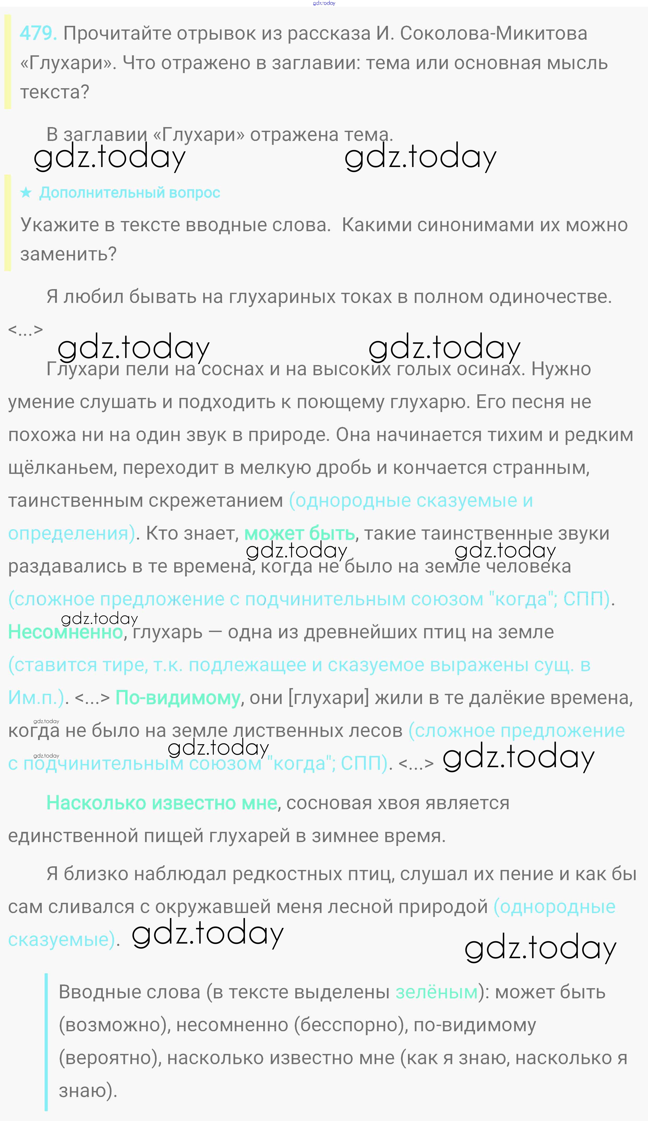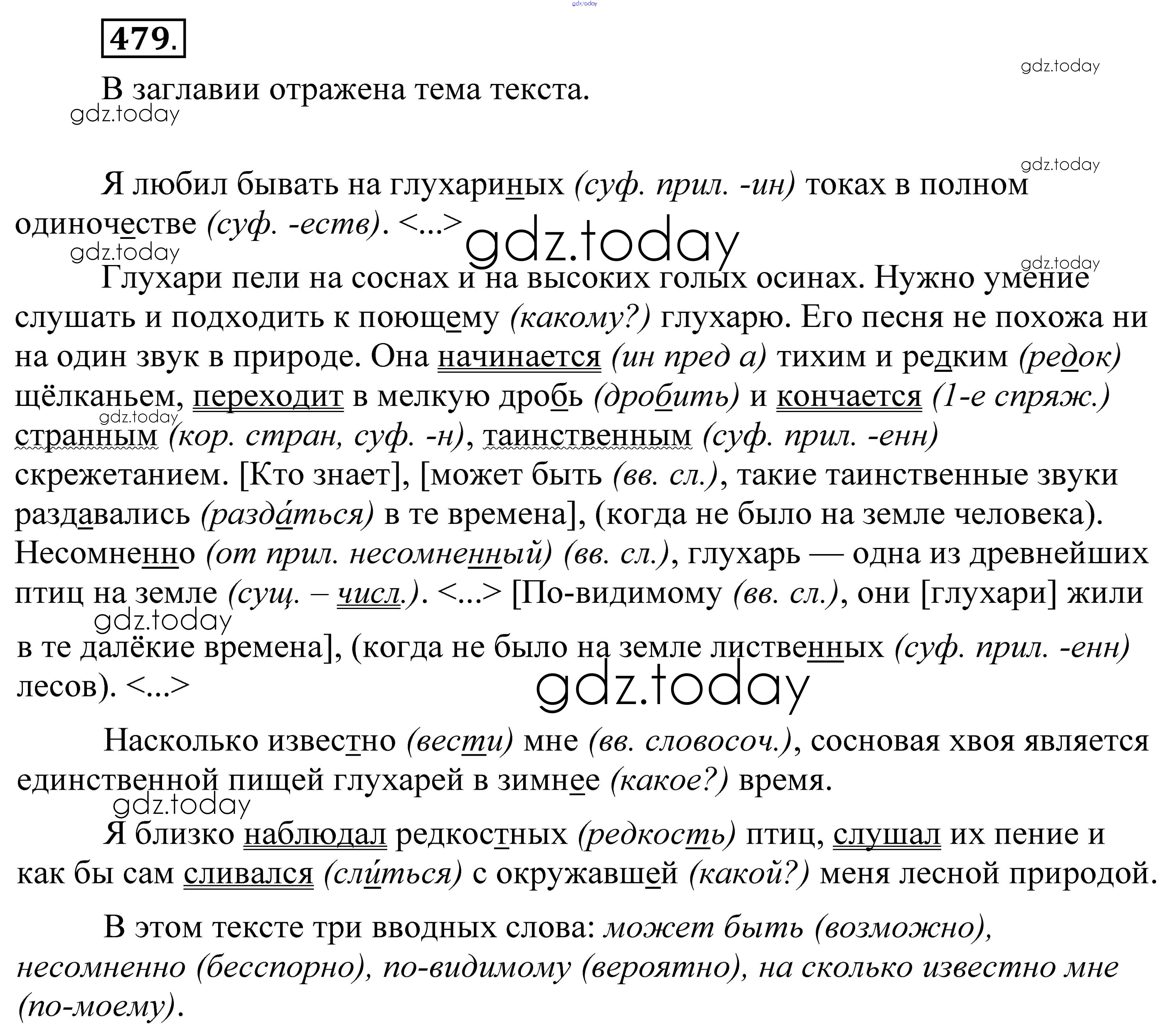 На страницах сайта gdz.today вы найдете учебный и вспомогательный материал, направленный на улучшения знаний школьной программы. ГДЗ - онлайн мир знаний Решение. Упражнения 479 Практике по Русскому языку для 8 класса Пичугов, Еремеева Дрофа, Дрофа Вертикаль 2016, 2022